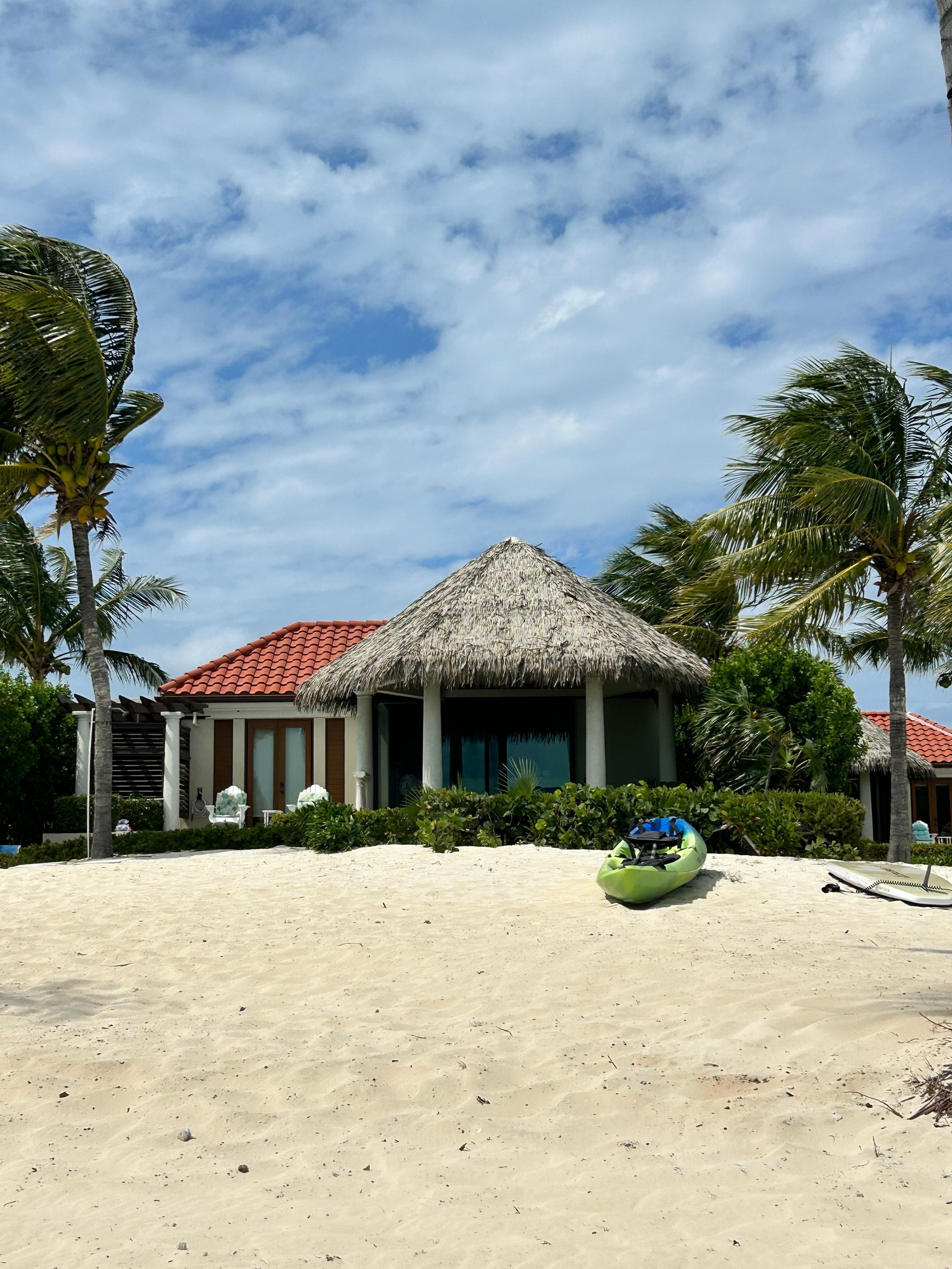 Swaying Palms is located in the PERFECT location. With soft powder white sand and crystal clear turquoise as far as you can see you will never want to leave. Located on the Caicos Bank, there are no waves and you can walk out, kayak or paddle board several hundred yards and the water will still only be up to your chest. Adding to the perfect location, while still being in a very quiet and romantic spot you are only a 2-3 minute drive to Grace Bay and all the restaurants, grocery stores, gift shops, golf course, Casino and other activities. If you prefer not to drive a 2 minute walk on the beach (or road) will bring you to the nearby Shore Club with its restaurants and spa.