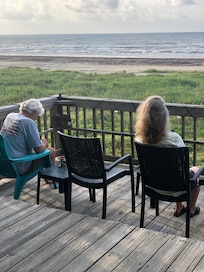 Sleeps up to 10 people. Very large deck with epic views overlooking the ocean. Fenced yard for children and pets. Many new updates. There are no houses in back or in front of our beach house, walk right out the yard and on the beach. Great place for family vacation. Enjoy the sunrise and sunset. Cozy and comfortable. Nice retreat. We have also added netted fencing inside the wood slat fence so that small children and pets cannot get through the fence.