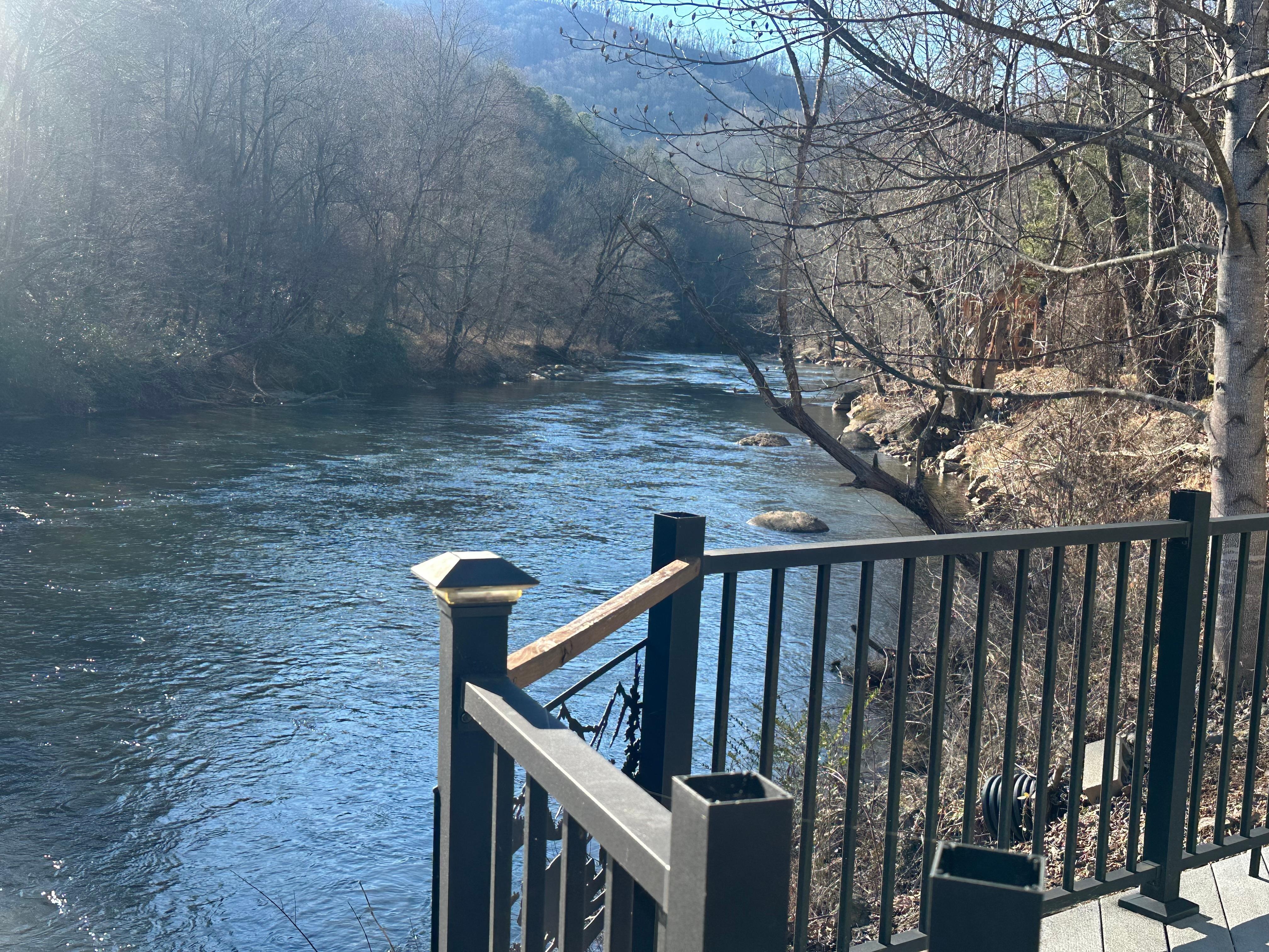 The decks are right over the river - feel free to drop a fishing line