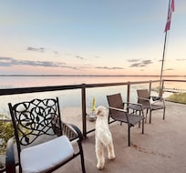 With a southern exposure you’ll enjoy the sun and the breeze on your private deck overlooking the water. Guests are welcome to take advantage of the shoreline and the use of 6 kayaks. The Bay is crystal clear and perfect for swimming. As the water is quite shallow, it supports the growth of water grasses which will brush your legs in the water and we recommend water shoes as it is pebbly underfoot. Guests can take advantage of a designated pebble beach area for lounging by the water and gathering by a bonfire in the evening.