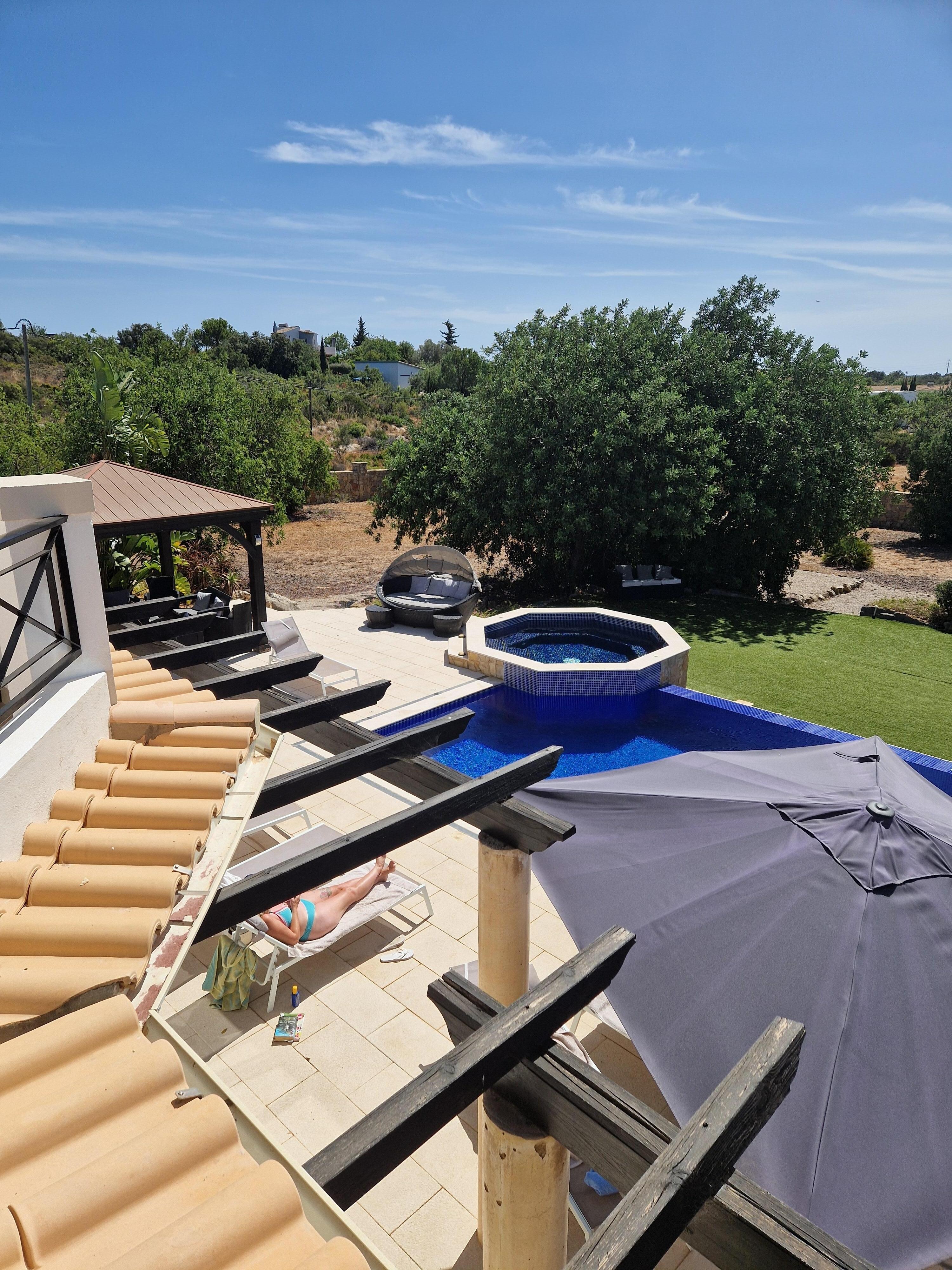 The villa is a good size, comfortable and clean. Communication with the owner and agent was very good. On arrival we were disappointed with the condition of the sun loungers but these were replaced with new ones part way through our stay. The pool table and dart board are in poor condition and unusable. However, the pool and the various sitting areas are fantastic. The pool water was warm as it is in sun all day and is not too deep (about 1.5metres). The hot tub and bubble pool added to the enjoyment of the pool area. The house is in a large plot of land and is very private. We liked the location (we have stayed in this area before) but it might not be to everyone’s taste as getting to the beaches is not straight forward. The are some good places to eat within a short drive especially Maria’s (Casa De Pasto Do Carmo) and the doughnut shop (Bolinhas do Carlos).