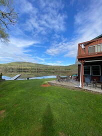 This spot on the lake has been in my family for many years. My father's family owned the land and used it to pasture thier farm animals. My mother's grandparents bought this lot and put a camper on it. During thier stays my great grandmother noticed all the moose that would come feed at the waters edge, so she started calling it 'Bull Rush Inn'. My Parnets bought the land from my great grandparents and built the cabin here in 1991, when I was just 10 years old. I've been in love with it ever since and I'm very glad to be able to share it with you. My husband and I have done a lot of work here over the years. We had turned it into two units in 2006, but in the fall of 2012 we've converted it back into a single family home. We upgraded the kitchen and made a large master bedroom with its own private deck.