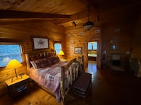 This 'One of a Kind' cabin that we call 'Great Sky' was created and built by a local rustic furniture craftsman and is a showcase of his talents in his design and abilities. He not only built the cabin but added his personal touch in creating custom cabinets in the kitchen, a wonderful staircase to the master bedroom and custom 'one of a kind' furniture throughout the cabin including chairs, beds, dining tables, rockers, etc. You must see to appreciate his talents.
