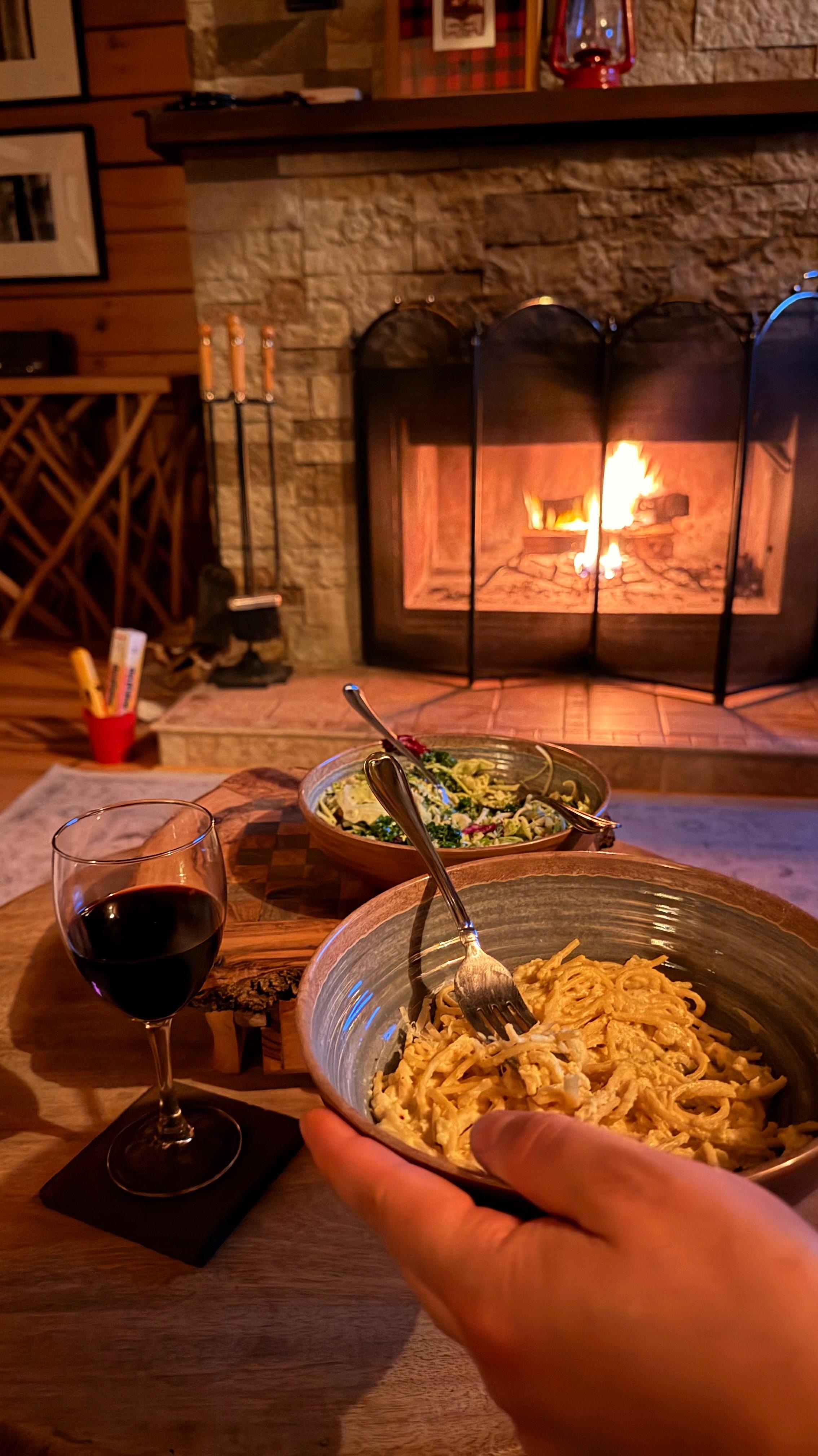 We visited over Thanksgiving. We loved the location and the fact we felt in the woods while being close to everything. So charming as it was already decorated for the Holidays. The fireplace made it even that more cozy.The cabin was well stocked with everything we needed. We appreciated the outdoor games - Bags - room for our dog and plenty of space to spread out. We look forward to visiting again soon!