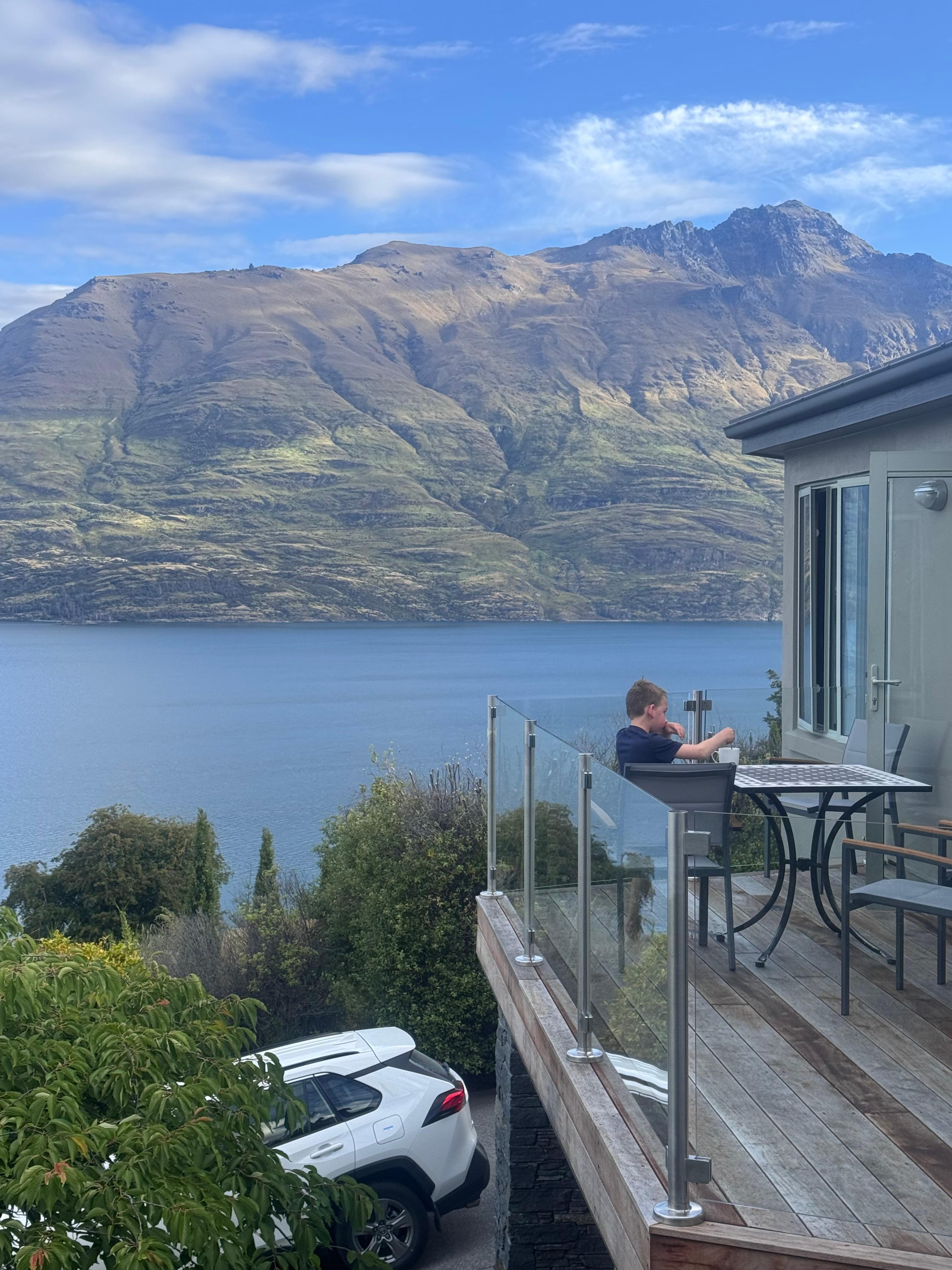 Enjoy the spectacular vistas of the Remarkables and Lake Wakitipu to Queenstown Gardens from all living areas in this house, located in the exclusive and quiet area of Aspen Grove. At night you can sit by the fire, and gaze upon the lights of Queenstown and the bay, or take in the stunning scenery from the hot tub located in a private garden setting. A gourmet kitchen, part of the main living and dining area, allows the chef to enjoy the company and conversation whilst still enjoying the stunning views which make Queenstown the premier tourist destination in New Zealand. Each bedroom is equipped for privacy and luxury, two have ensuites, and the other two share a separate bathroom complete with private spa bath. All bathrooms are fitted with under floor heating and warming towel rails for your comfort. All bedrooms have a flat screen television, or you may choose to enjoy television viewing from the separate entertainment lounge located upstairs. Free wi-fi internet connection (unlimited) is included. Go outside to the beautiful gardens and you will discover a private barbecue/entertainment area - complete with views to Cecil Peak and a private hot tub spa. The house is conveniently located - twenty minutes walk or ten dollars in a taxi will take you to the centre of Queenstown's action and night life. Superb restaurants, casinos, night clubs, shopping and tourist facilities are at your fingertips. Located only 500 metres up the hill, you will find a terrific little restaurant, take away and convenience store.