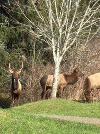 We love watching the eagles who nest in a tree across the river from our cottage and of course the herd of elk we often see grazing in the morning and evening. It's also fun to keep an eye out for river otters or sea lions and of course watching the fishermen reel in some big fish is entertaining.