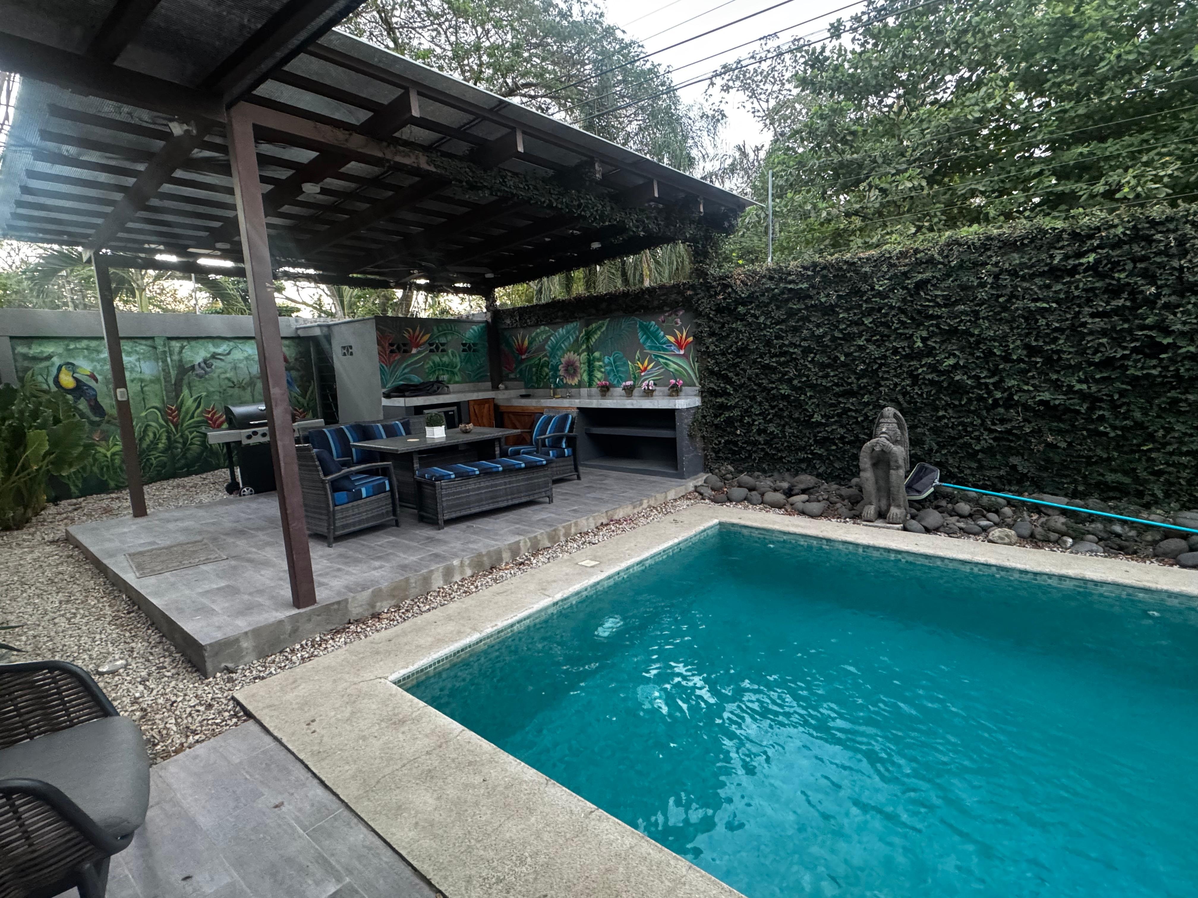Our family of six stayed in this VRBO for the first half of our trip to Costa Rica and it was the perfect spot. Julieth, the local property manager, was very quick at communicating and anticipated every need we might have along with giving us quicker directions to reach the property (which took about an hour from LIR). The house was located within an easy walk to a wonderful coffee shop and a slightly longer walk to the beach (although we chose to drive and it was just a few minutes). The house was well stocked with everything we needed, the bedrooms were perfectly sized with cool AC, and the pool was our favorite part! We had at least two meals a day out on the patio by the pool and missed this area the rest of our trip! We also had the incredible experience of howler monkeys walking down the power lines right by the house! 10/10 stay and we are already planning on returning.