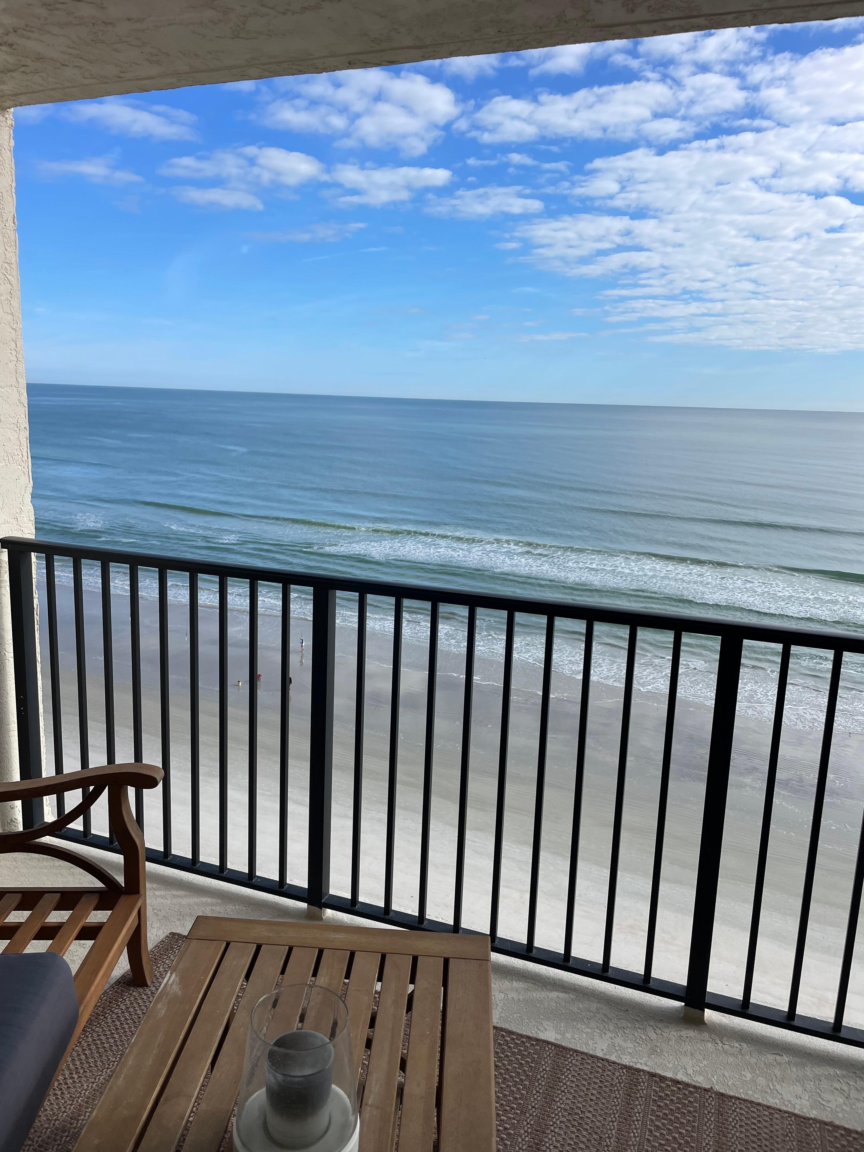 This completely renovated, fully furnished, professionally decorated family friendly condo awaits your arrival on the shores of a quiet “no drive” New Smyrna Beach. This 10th floor unit at the Southwind Towers condominium offers a spacious 2-bedroom, 2-bathroom configuration with a stunning ocean view facing east and the Mosquito Lagoon facing west. Treasure the breathtaking views from the private ocean front balcony. This nonsmoking, exclusive atmosphere provides a relaxed setting for fun with family and friends, and you may even see dolphins on the horizon.