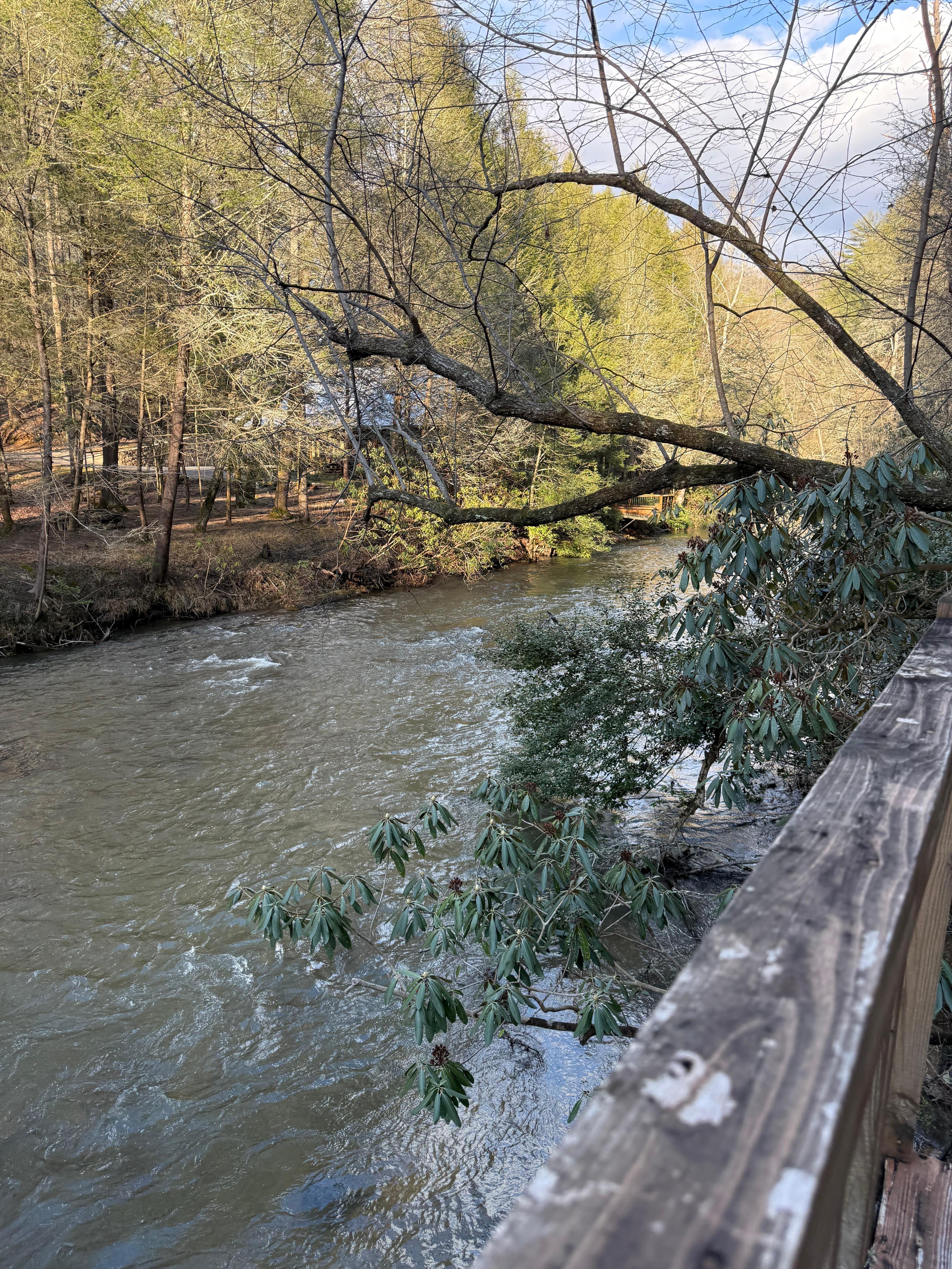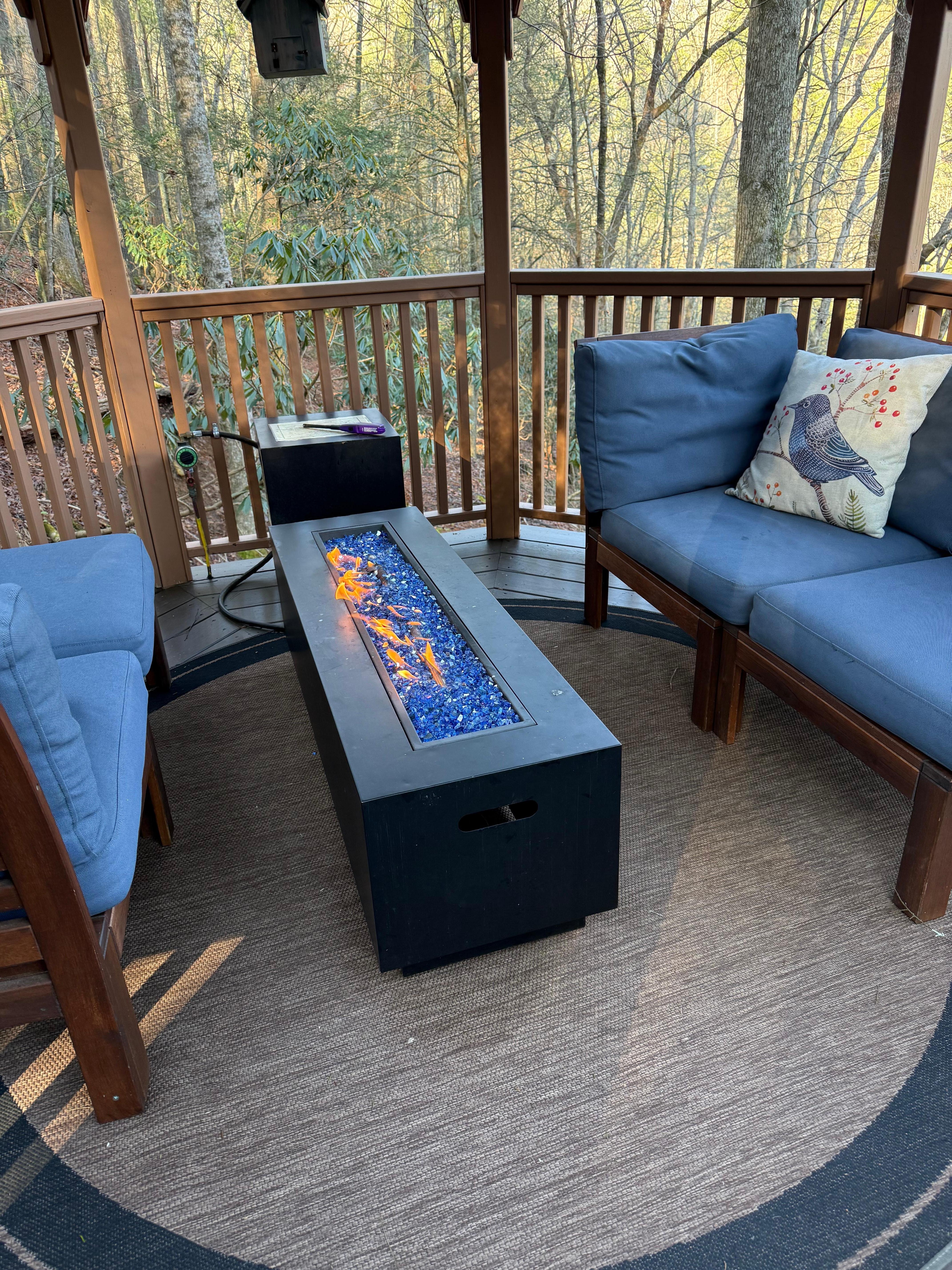 We enjoyed everything about our stay. It was a great last minute getaway and the cabin was exceptional. The extra attention to details in every space made the stay even better. The cabin has so many cozy spaces. We especially loved the decor, the cozy blankets, fireplace, Bluetooth speakers, kitchen and chairs overlooking the river below, the bedroom space, the extra doggie treats and bed, and even the emerald green cabinet pulls. We especially enjoyed the covered bridge being lit up on our way in and out each day too. A very quiet place to retreat and enjoy nature. Highly recommended.