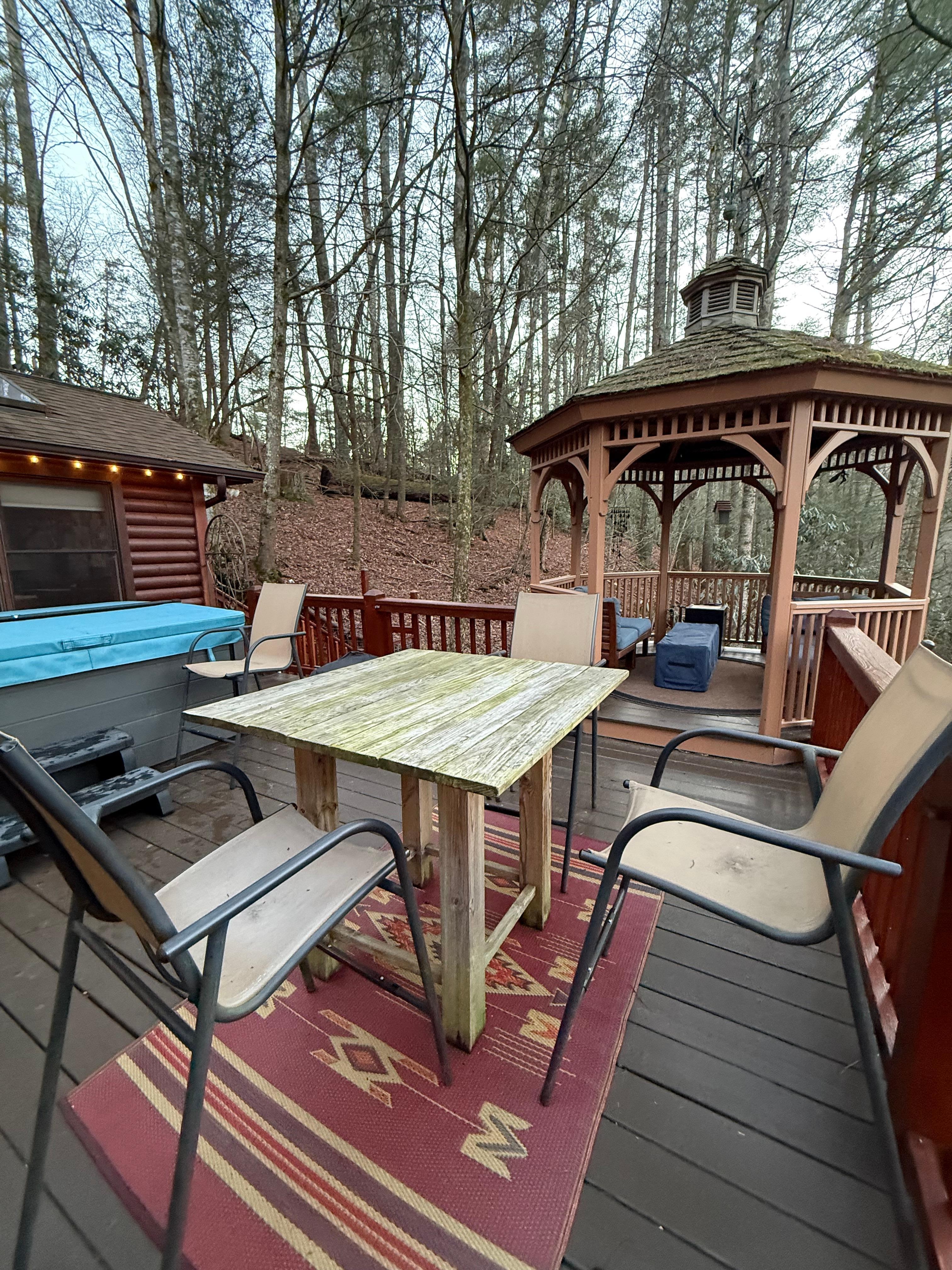 Awesome cabin experience, we loved the cabin and especially the back deck with the gazebo. the cabin is fully stocked and ready, our dogs loved the fenced in yard. very comfortable, quiet and relaxing. loved being the last cabin on the road so we heard no cars only the river and the wildlife.