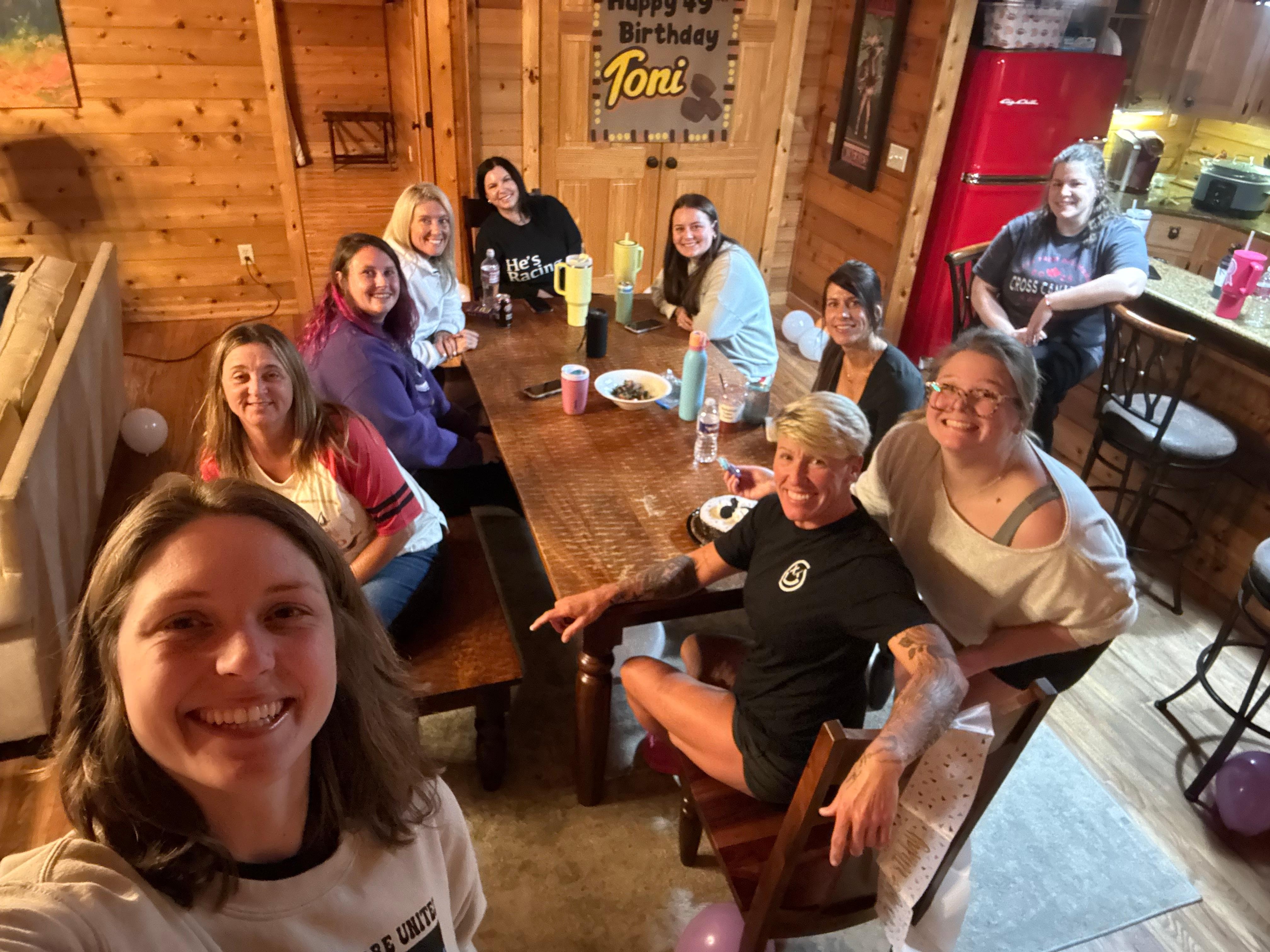 A no pet cabin that sleeps 16 with 3 king bedrooms, and upstairs in the loft is another king bed, and a full futon sofa sleeper. The bunkroom has 2 bunks, queens on bottom and twins on top. There are two and a half bathrooms. A separate garage recently converted to a game room houses the pool table, ping pong table, game tables, a tv and microwave with seating.