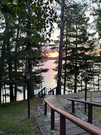 Enjoy your lakefront getaway in this newly renovated, rustic log cabin. With two outdoor fireplaces, three indoor fireplaces, and a view of the pines through every window, this cabin makes for a cozy retreat no matter the season. The cabin has 3.5 bathrooms and sleeps 13 with a master bedroom, upstairs bedroom, loft, and basement for plenty of sleeping room for the whole family.