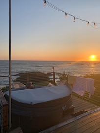 When you return to your cozy hideaway, you can relax in the hot tub while experiencing breathtaking coastal sunsets.