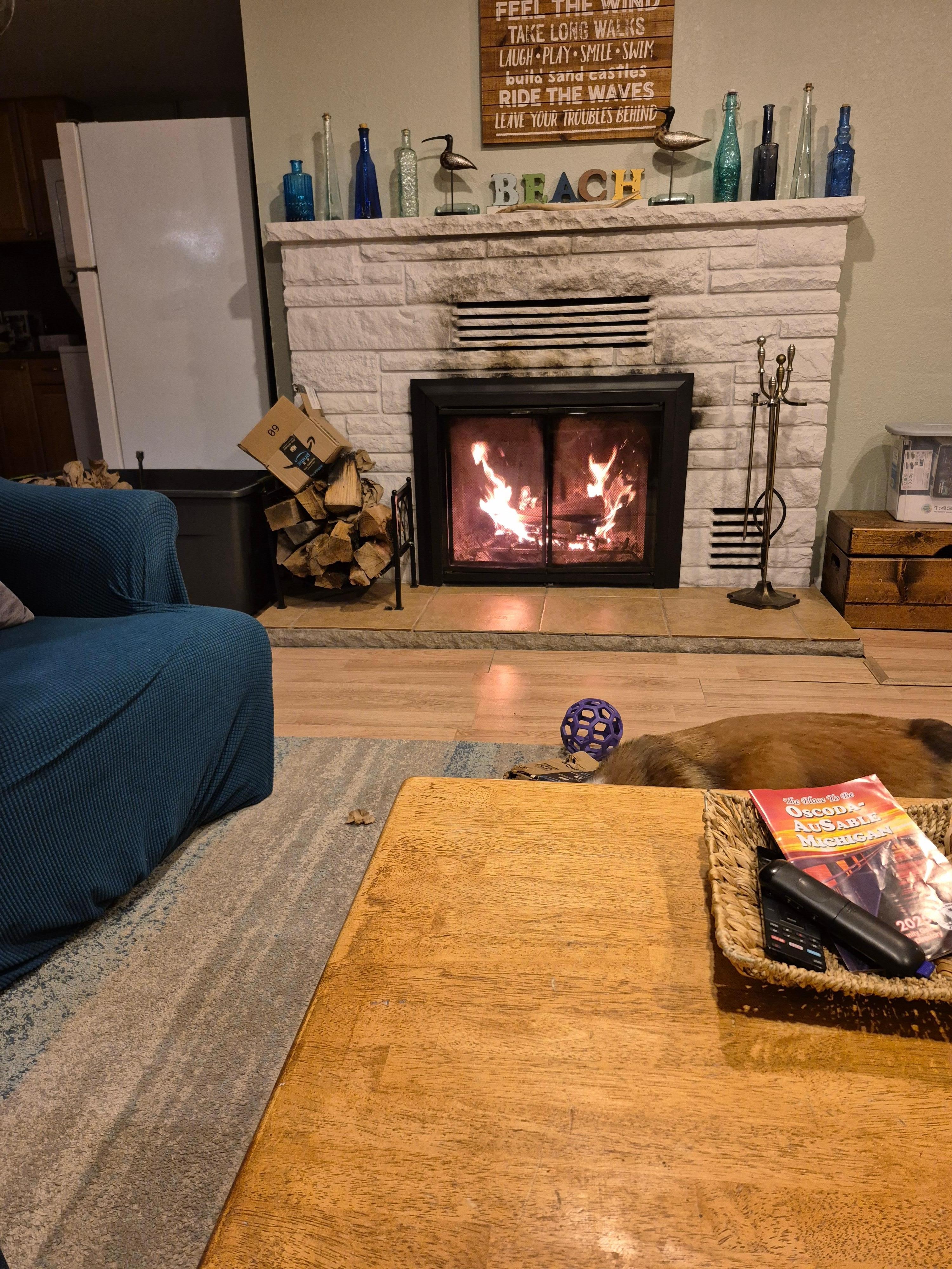 • Living room with wood-burning fireplace.
