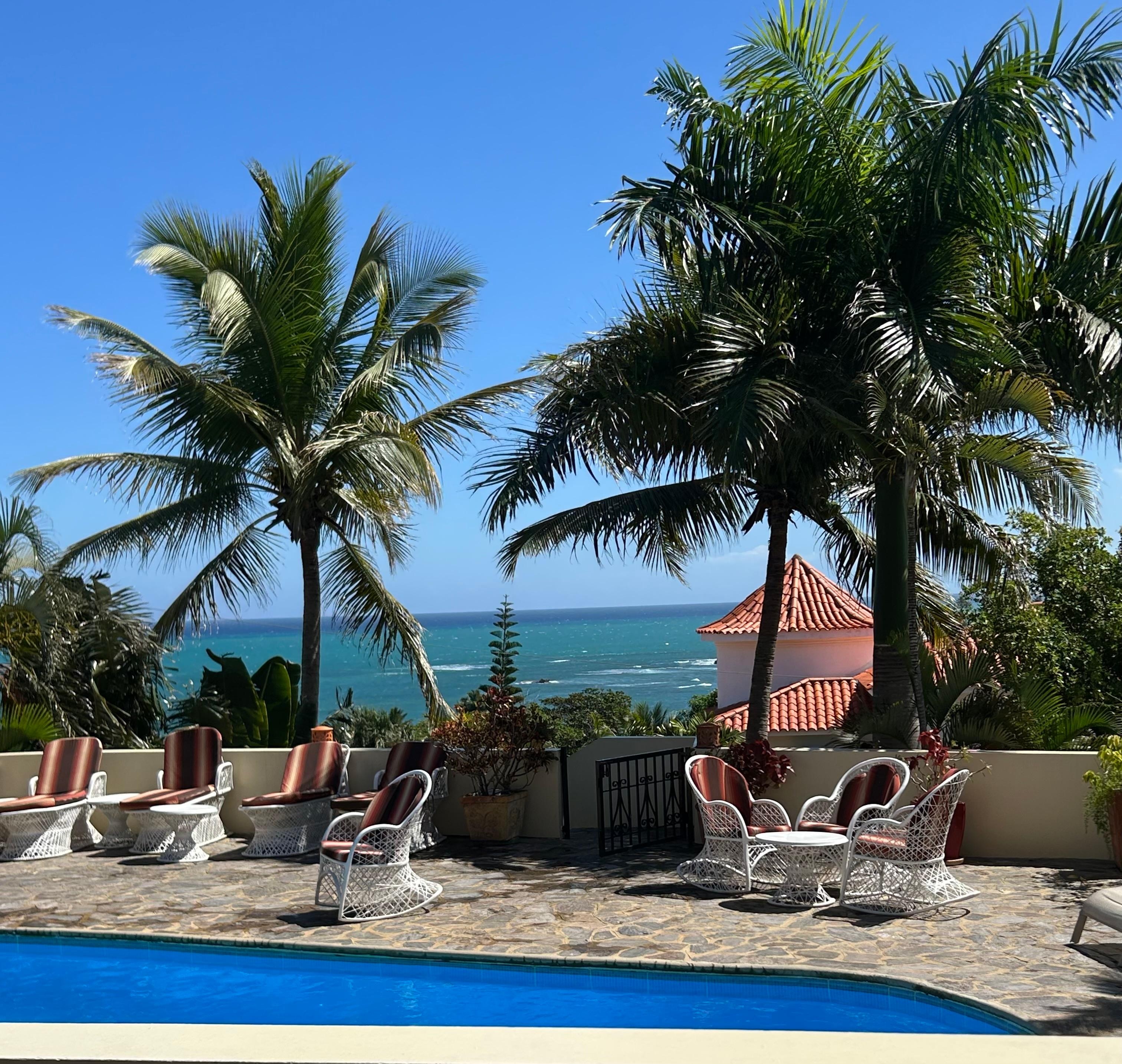 This luxury oceanside villa features a panoramic view, a private pool, and a housekeeper/cook. It has five bedrooms and eight baths; and it comfortably sleeps up to 16 persons.
