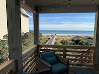 • The top floor deck has 2 full-size couches, two chairs a coffee table and side table. It is the perfect spot for evening cocktails or if you need to duck out of the sun, but still want to keep an eye on those down on the beach.