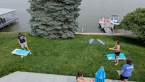 When you're not enjoying your private lake access. Pony up to our custom wet bar positioned just off the main lower level and relax! Toss a few darts on our barroom dart board or cozy up to one of two fireplaces. Just steps off the lower living area is the outdoor porch with plenty of seating. Here you can directly access the water and the private dock, perfect for swimming (equipped with ladder), fishing, boating, or other water activities. We welcome you to bring your boat or rent one on the lake and tie-up to our dock.