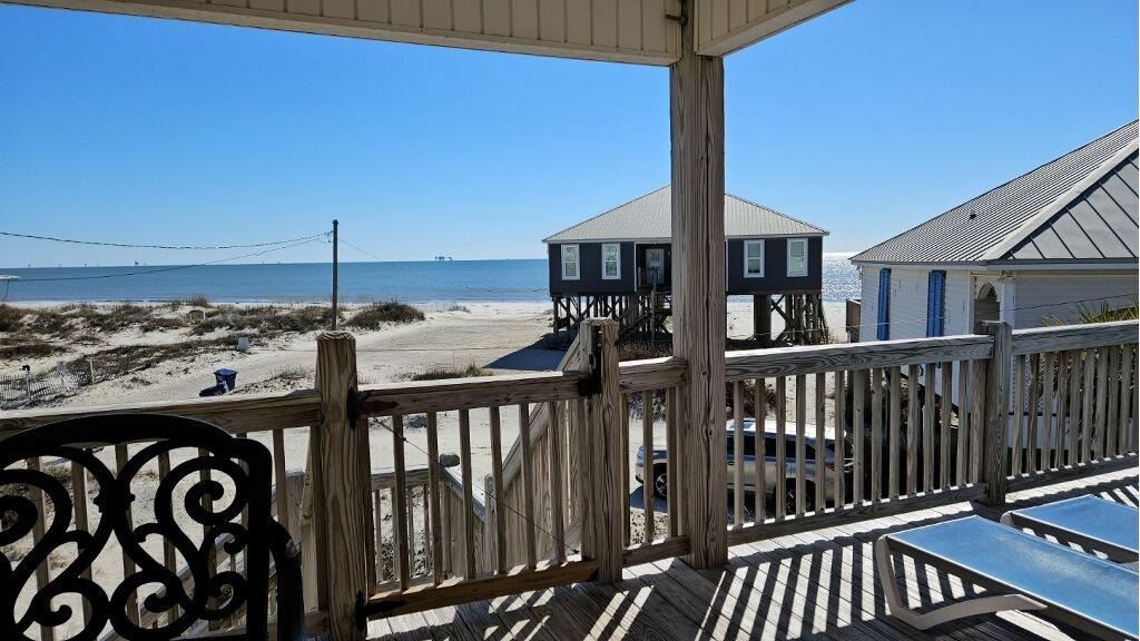 Newer Construction with awesome Gulf Views (house is angled on the lot for the best views of the Gulf). Only steps to the beach! Approximately 1900 sq. ft. of living space. Beautiful "wood plank" tile throughout the house, lots of windows and furnished in a contemporary style. This home has 2 large decks (upper AND lower deck with shower). Home has great amenities like a 60" smart TV and DVD player in the living room. All bedrooms have 40" smart TVs. Dish network and fast fiber internet are provided. Indoor washer and dryer. Kitchen has granite counters, stainless steel appliances, center island and is well stocked with pots, pans, utensils, etc. The two Gulf-facing bedrooms both have king beds, private baths and french doors to the deck. There is another king bedroom with a private bath and bay view. The bunk room has two full over full bunksets and is next to the hall bath with a bathtub. The bunks are built strong and will support adults. Family board games and DVD collection provided. BBQ grill too! (just bring your own charcoal)