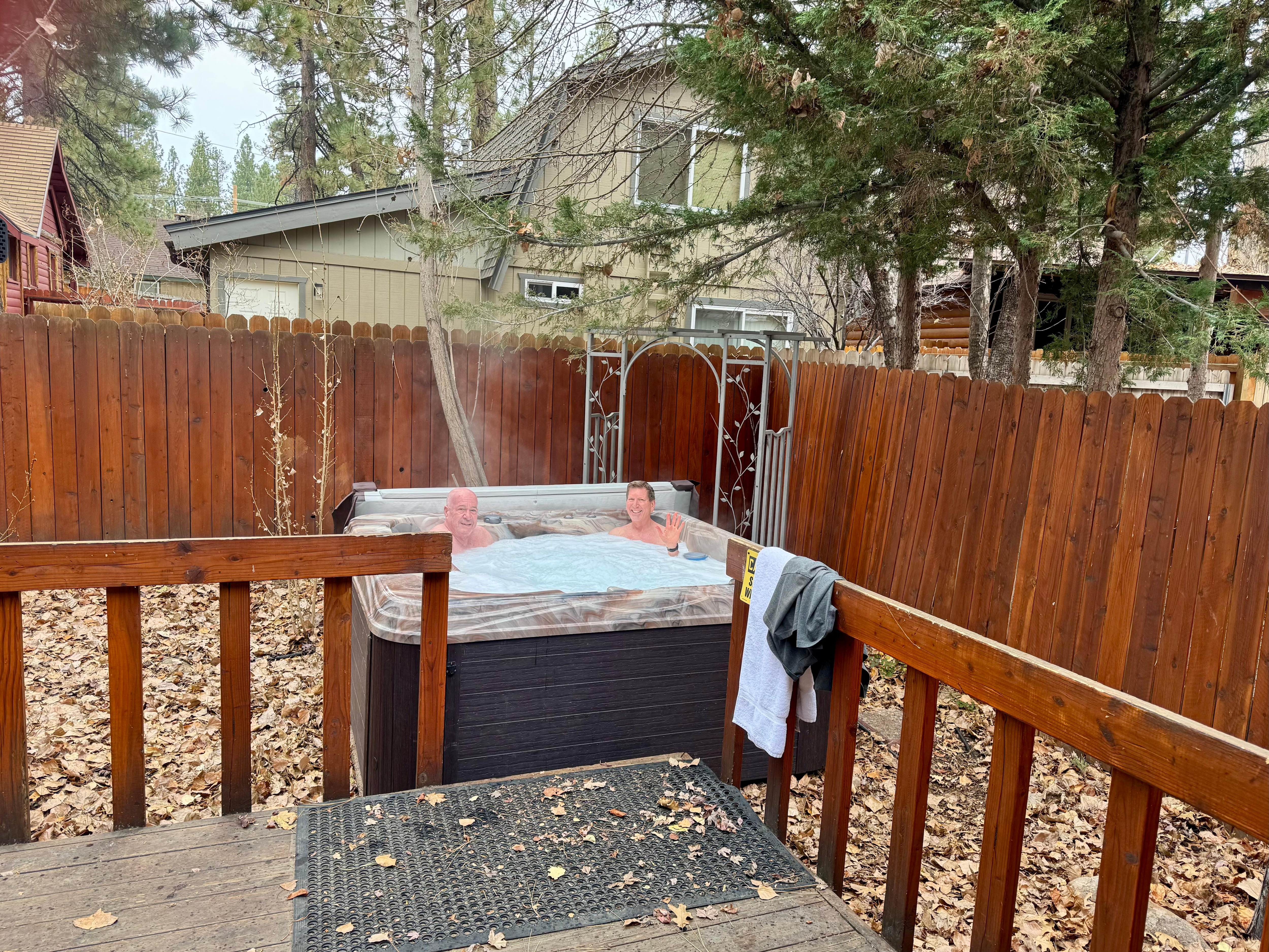 ✓ Backyard: Private and fenced, creating a peaceful mountain retreat with a hot tub for relaxing under the stars.