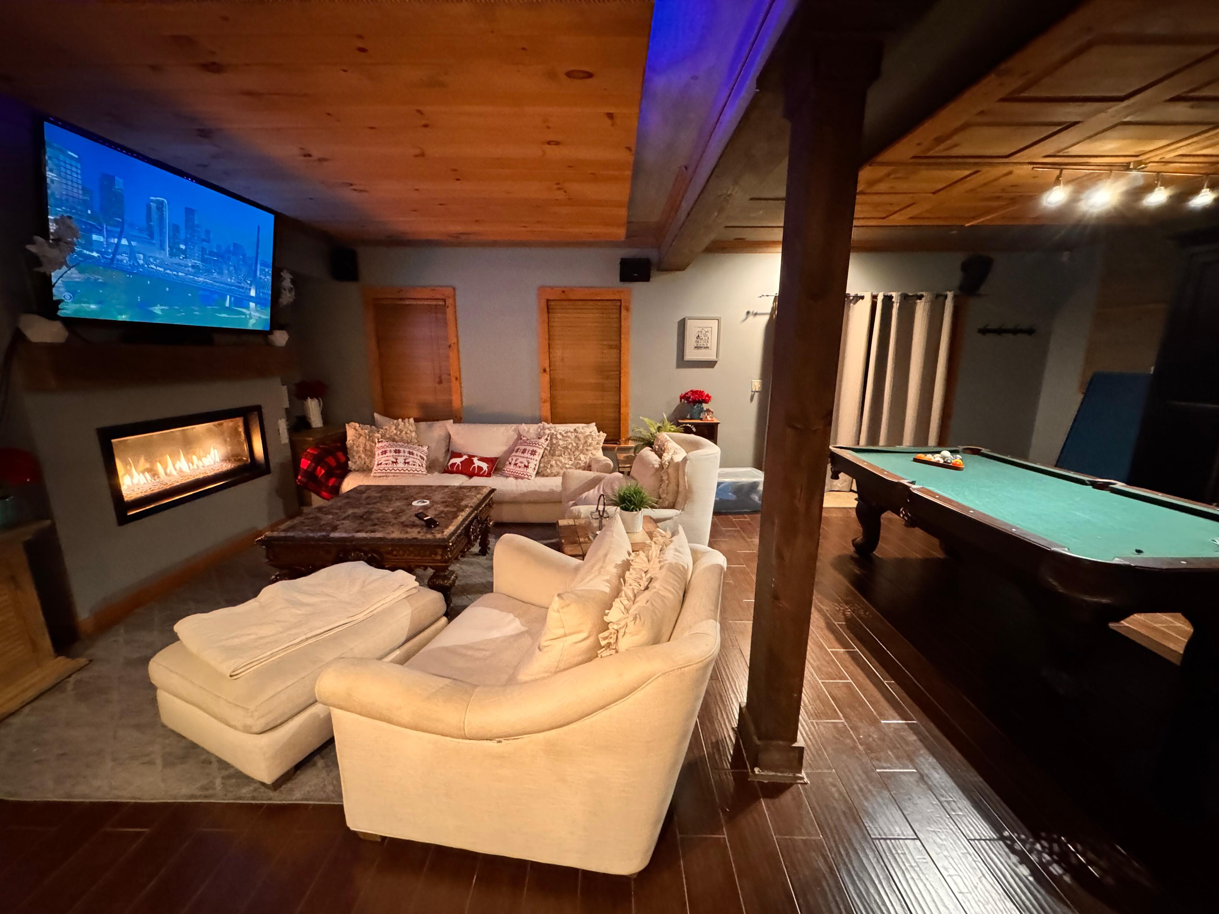 - Movie Room with Xbox and surround sound with fireplace.