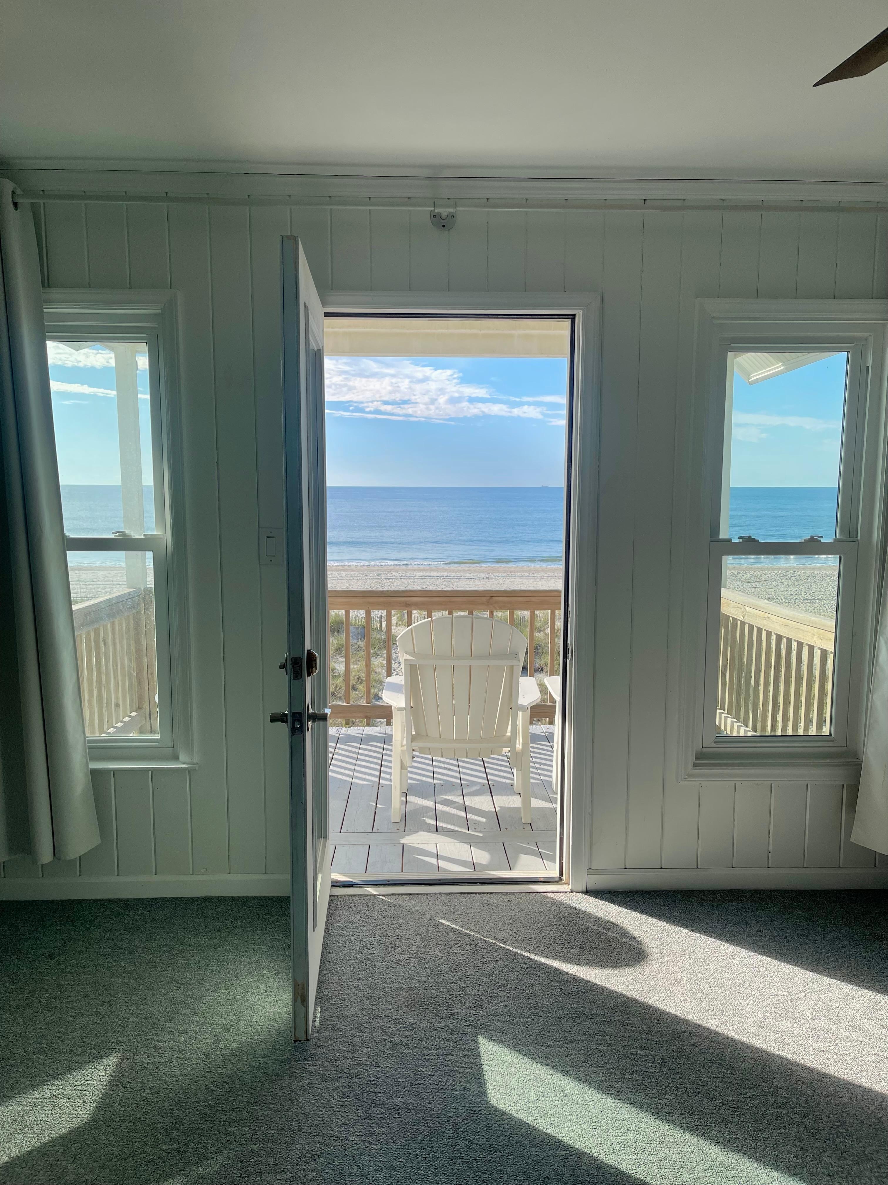 Enjoy full ocean & beach views from SeaDated’s huge semi-covered deck and wall-to-wall windows.