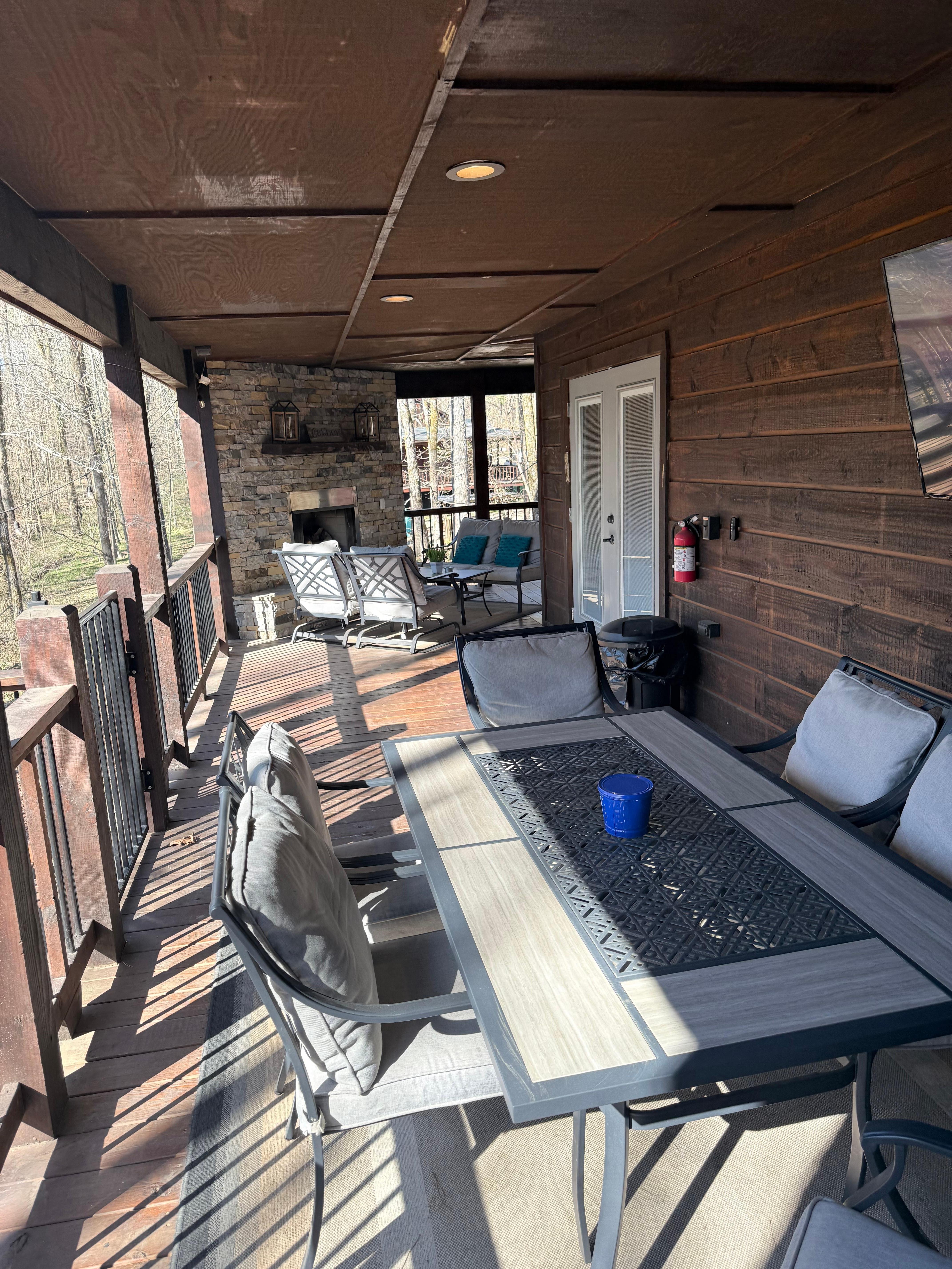 The massive 1,100 sq ft covered deck is your hub for outdoor memories: