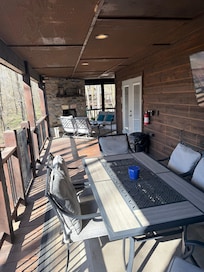 • Ambiance: Sink into the plush leather sectional sofa with a soft throw, warmed by the custom gas log fireplace in winter months. Step out on the covered deck and enjoy your company and nature. Open floor plan with plenty of space to mingle or find a quiet corner to reflect.