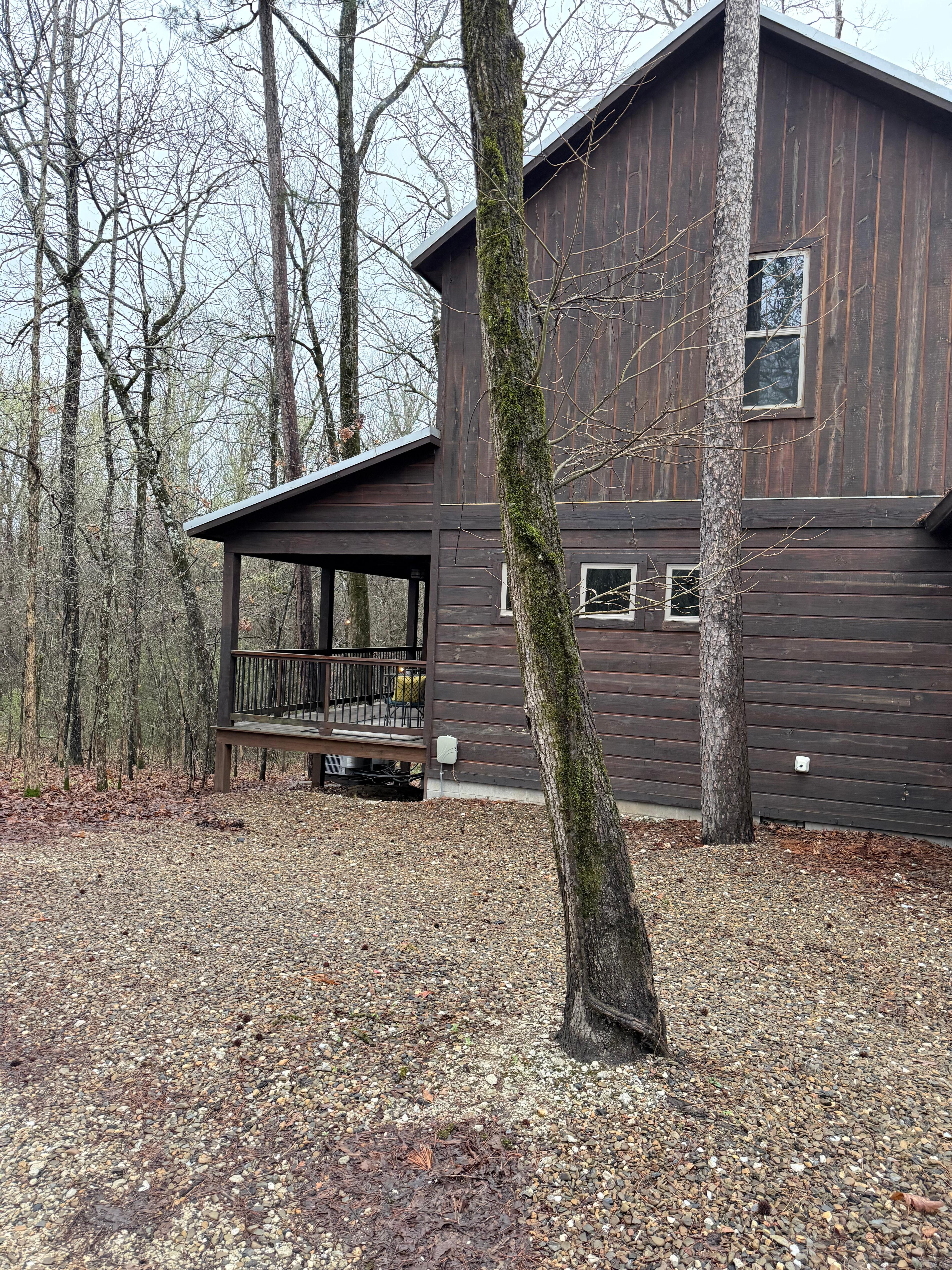 Quiet peaceful area. Close to the new attractions. We have a lot of wildlife and mature hardwood forestry. The seasonal creek in the back is a bonus! Our cabin has a rustic cozy feel with modern touches and amenities.