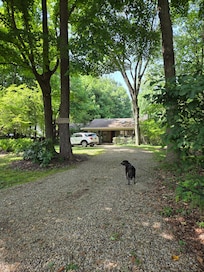 I purchased this home because of it's easy access from the highway, yet you feel completely removed and isolated. I also wanted a home that was set back from the road, had a large yard for my dogs, offering them freedom in a secure environment. I love the open floor plan with high ceilings, yet feels cozy and warm. I also always wanted to 'rock' on a front porch and have a screened in porch...I never tire of relaxing in these areas with a magazine, cup of coffee and dogs under foot.