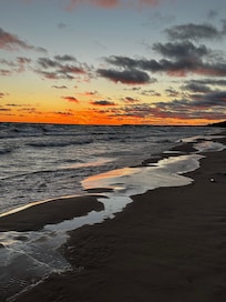 Finally, enjoy a wonderful night in one of three bedrooms or on the new and very comfortable sofa bed. Or, take a long soak in the beautiful tub in the master bath. Open the windows and let the waves lull you to sleep. In the morning, take your coffee outside and watch the sun rise over the lake. (That's right, you can watch the sunrise and the sunset from your private beach!) And then, start your adventures all over again. Memories of a lifetime will be made here.