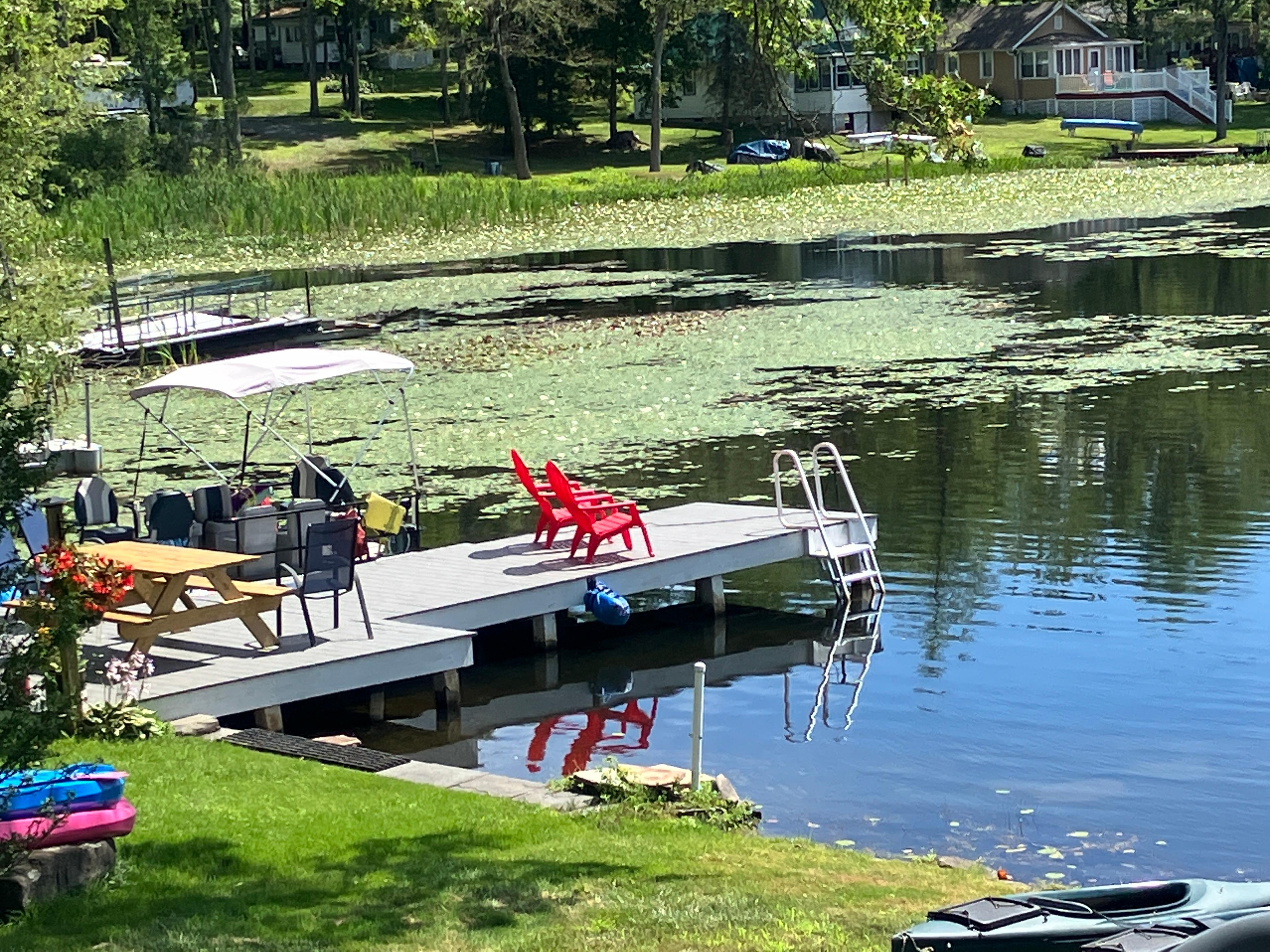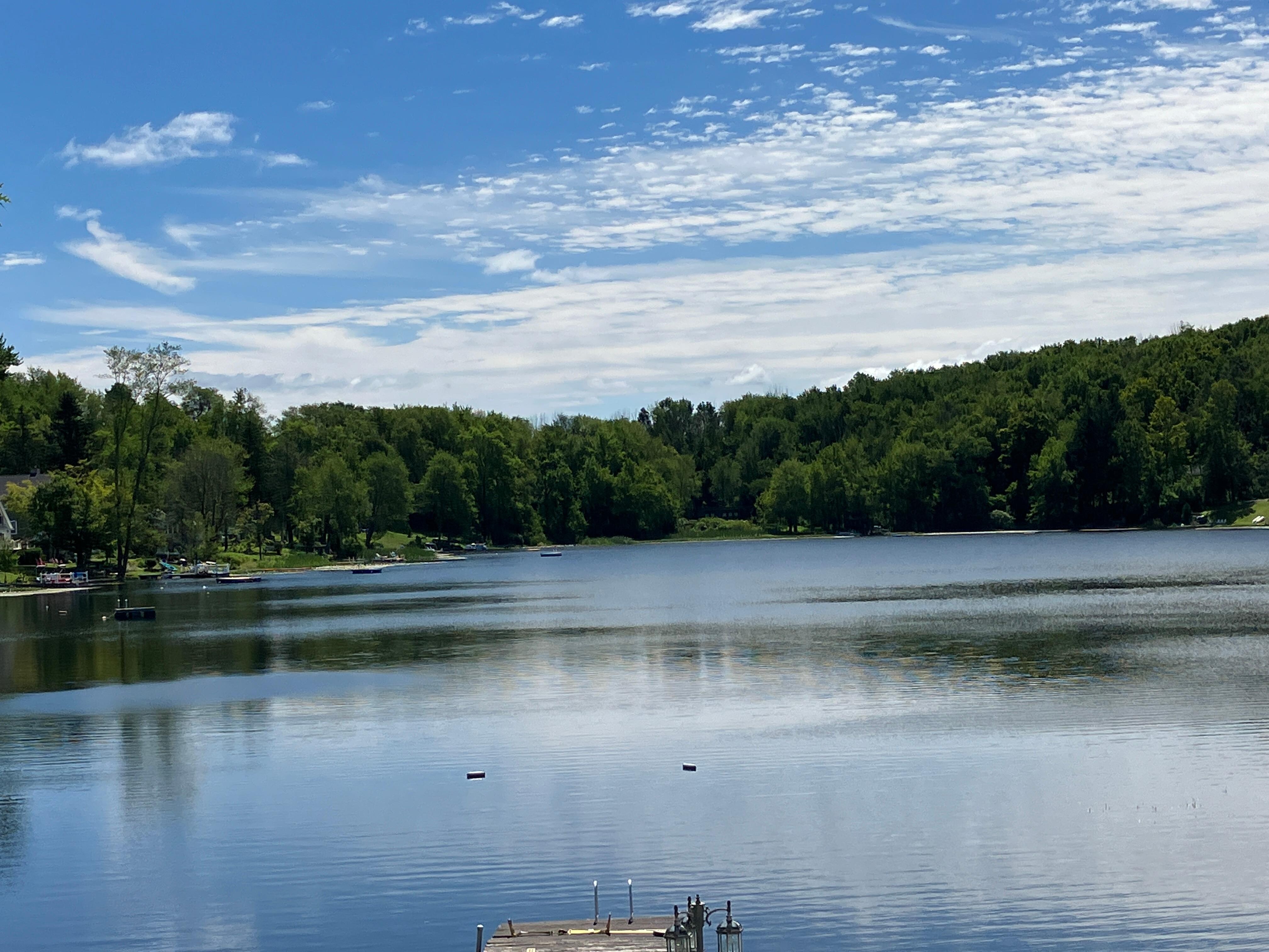 Year round 4 bedroom, 2 full baths, 4 car garage on Handsome Lake. Close to Elk Mountain, one exit south. Private dock, central air conditioning, large rooms, beautiful screened in porch and private patio area. Quiet lake with no motor boats allowed (electric ok) which makes it perfect for swimming. Wonderful and family friendly community! Age restriction of 35 for adults, max number of adults 8. Fifteen minutes from Clarks Summit and Waverly. Linens and towels are only provided for stays of 4 nights and more.