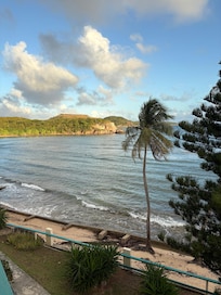 Looking for a lush tropical setting located directly on the ocean? Come to our island paradise. Enjoy year round fun in the sun or just relax, get away from it all at our oceanfront condo. Island living at its' best. Tropical breezes gently blow the palms at our studio on the beach. The sound of gental waves relaxes you.