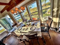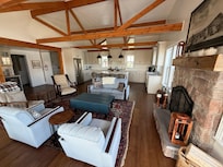 Garland House has 12 foot ceilings and large rooms. On the main floor there is a brand new (2021) Chefs Kitchen open to a sitting room with fireplace and a dining table for 8. The new sitting area with couch and chairs overlook the harbor and beach. Additionally, there is a separate Living Room with a couch and chairs providing comfortable seating to watch the flat screen TV with extensive cable service. There is WIFI throughout.