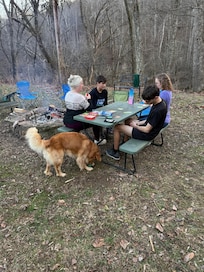 Ideal location for all sorts of outdoor adventure, romantic weekend getaways, family gatherings, and a relaxing retreat in a beautiful forest setting. Centrally located near lots of outdoor recreation options, putting you right in the heart of Kentucky’s sweet spot for nature lovers and outdoor adventure. Animal lovers - we have pasture pets on the other side of our property across a ravine/creek ~ 4 donkeys, 3 goats, and free range chickens. We often have farm fresh eggs to share :) On early mornings, you may see flocks of wild turkey crossing the river, deer, otter, bald eagles and a variety of pretty birds.