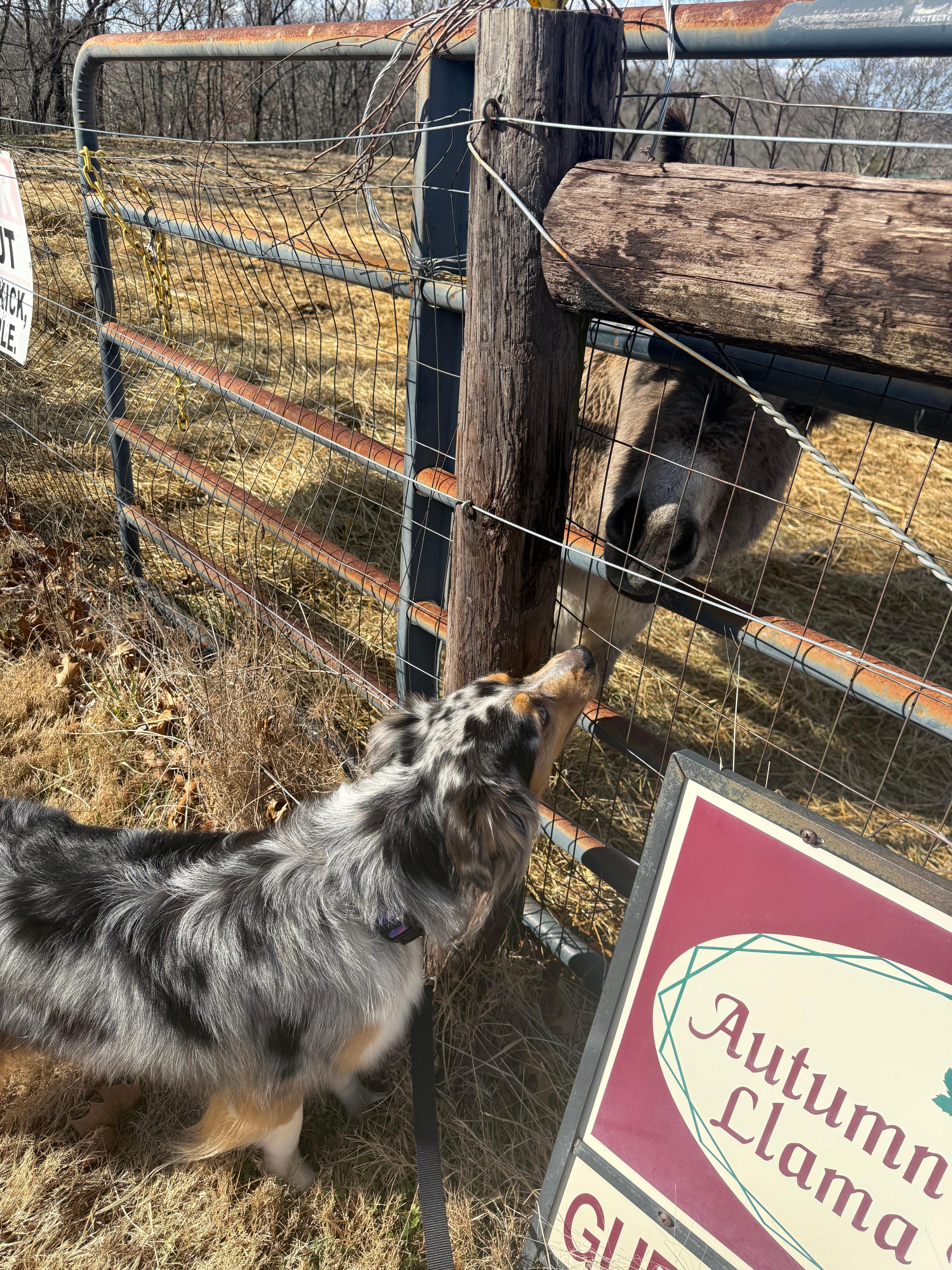 Are you an animal lover who would love to vacation at a place where there is peace and quiet as well as all kinds of animals, both domestic and wildlife, to watch? Do you stress when planning a vacation because you can’t bring your dog(s) along? Would you like to have unlimited long distance calling available rather than trying to use your cell phone in our mountainous area? Then Cabin at Autumn Dancer Llama Farm is the place for you. The cabin is situated on 17 acres of beautifully rolling hills directly below Meadow Creek Mountain. For your canine family members (we allow up to 5 dogs..size doesn't matter), we offer 1/2 -acre of fenced backyard so that they may run and frolic as well as a fenced deck. We've replaced the backyard fence and have added pictures showing the cabin with the new fence.