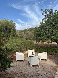 With 3 bedrooms the Finca has enough space for 6 people. All amenities such as washing machine, small dishwasher, dryer, wireless internet, satelite TV and DVD player are available. The kitchen has its own access to the garden. Here you will find a chil area with outdoor seating located in the shade of olive trees.