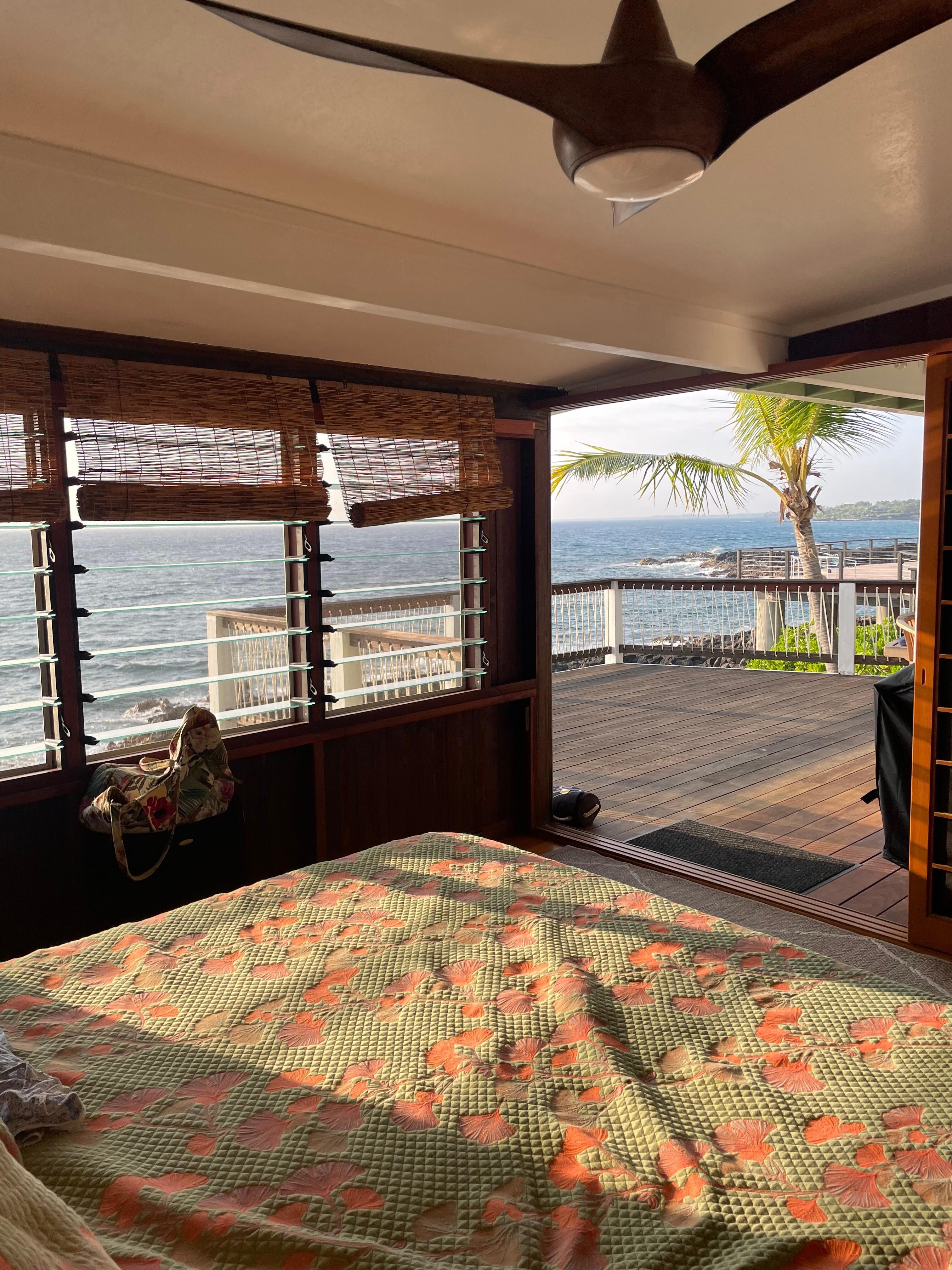 The location of this home was amazing. We loved listening to the waves, and watching the dolphins, snorkelers, and outrigger canoes come by each day. The house was well supplied for cooking, and we enjoyed preparing some meals at the house. We were there Thanksgiving week, and the traffic on Ali'i drive was pretty heavy. It was a bit hard to sleep in the rooms that were roadside due to traffic noise, and the louvered windows let sounds in even when closed. The host was very responsive and supplied a noise cancelling machine, which did help.Overall we had a lovely week.