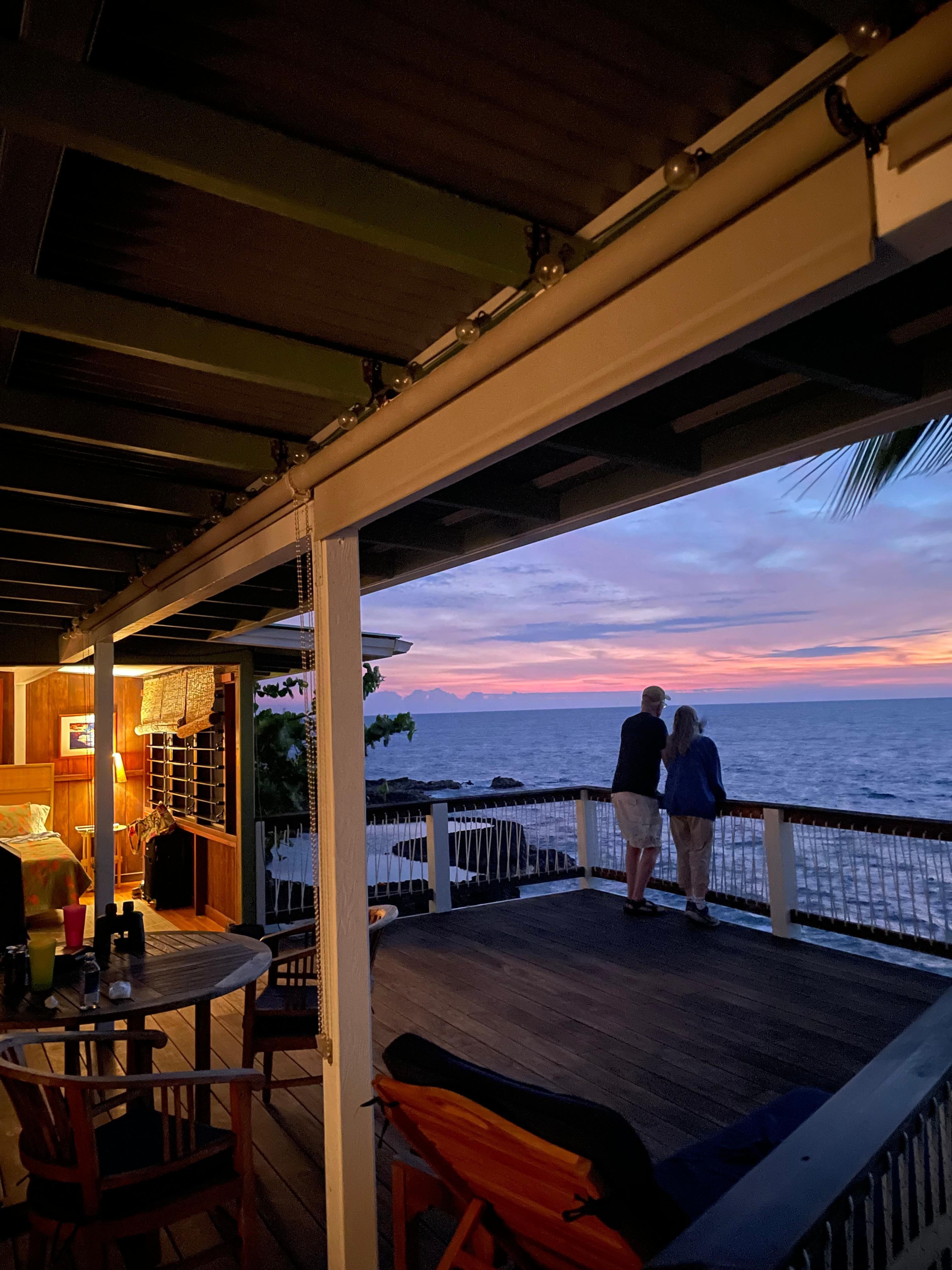 Rating Details: The property manager was very helpful. The vacation rental was spotless. I was very happy with the location. I was very satisfied with the condition of the vacation rental. Overall, I recommend this vacation rental. Reviewer Comments: This was a great place for our Kona vacation. The deck is large and comfortable and is right on the ocean with spectacular sunsets. Expect some street noise from Ali’i, but most of it is muted by the surf.