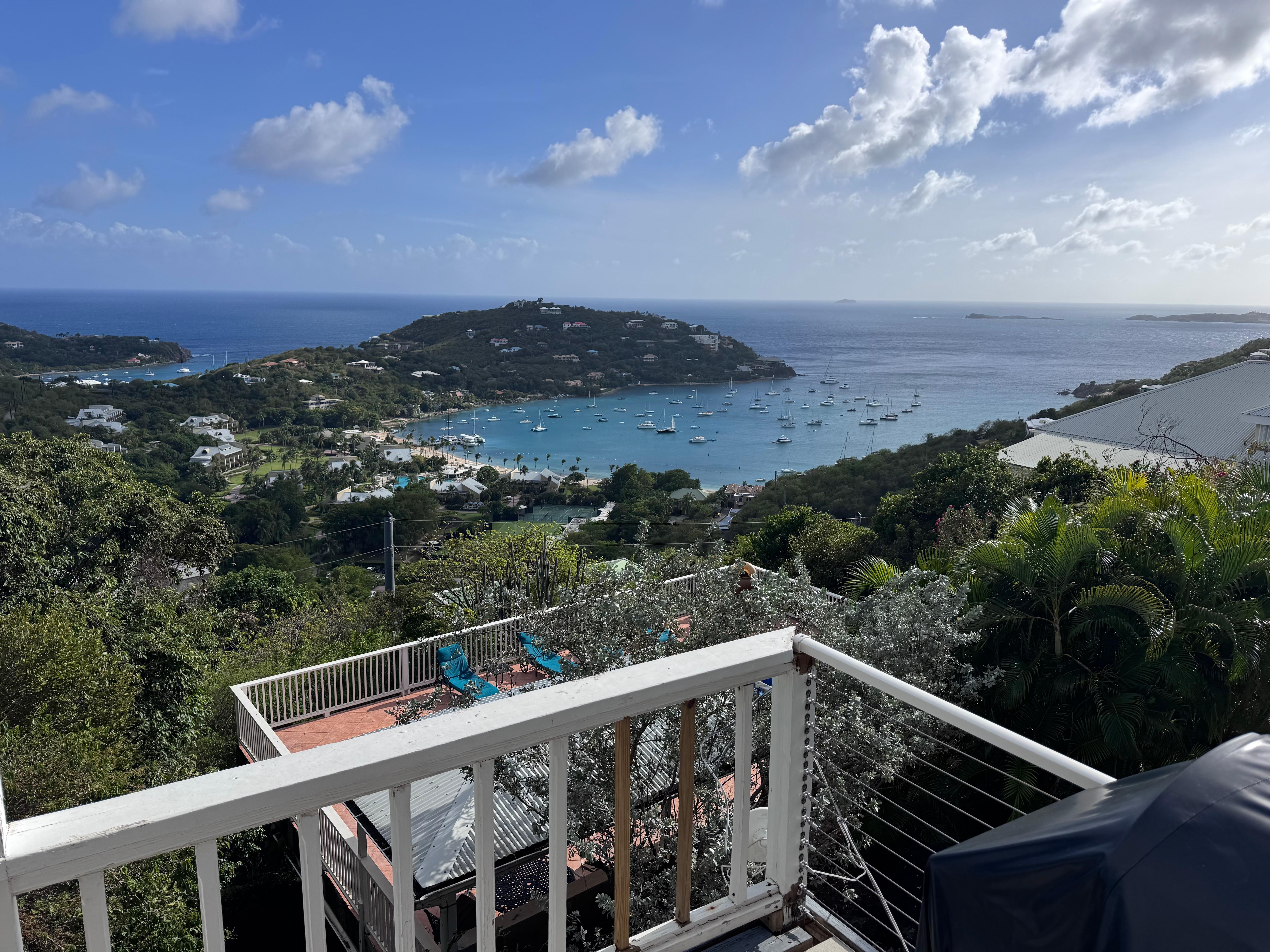 Some of the best views right next to Cruz Bay town. Easy 3 minute drive to town. Location, location, location and views of course. Also, the property is FULLY A/C and has a GENERATOR to power the entire house which having both are rare in St. John at this price point. Don't skimp on any accommodations- you will not be hot or without power while staying at our property.