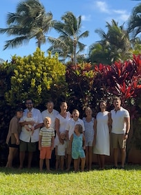 You can't beat the location: Kuau Makai is just a few steps away from Mama's Beach in a quaint and quiet neighborhood where it is still a pleasure to walk about. The house is on 2 levels: there are 4 bedrooms and 2 bathroom downstairs and 2 more rooms, both King size with bathroom attached on the second story. Gourmet kitchen, dining and living room and a 1/2 bathroom are also upstairs and so is the lanai with a partial ocean view, perfect to sit in the evenings just shooting the breeze. Outdoors the house is surrounded by a tropical yard with a hot/cold water outdoor shower, a BBQ and laundry area, with 2 washer/dryer sets, in the back . Hale Makai is the perfect setting for a reunion of a large family or a group of friends. Children and adults alike will love watching small fish in the tide pools at Mama' s Beach as well as turtles swimming in the bay.