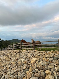This property has 40 acres of pristine mountain and river access. Southtoe River Ranch has miles of walking trails and chose to 1 mile of river where you can fish, picnic, explore, swim, tube/canoe and float the river. The property once had a working mica mine on the property that now has been turned into an awesome picnic area which also has a deep swimming hole that has been used by past generations over the last 100 years. Also unique to this property is that you have both long distance Mountain views and river views on the same property. The river ranch has horses to look at and a working orchard and vineyard. There are many walking trails from the lodge down to the river to explore. Walking down to the overlook platform from the lodge to relax and drink your coffee and listen to the river is an awesome experience. This is a very private secluded property to which there are many places to sit and relax and just enjoy the peace and quiet of the North Carolina Mountains.