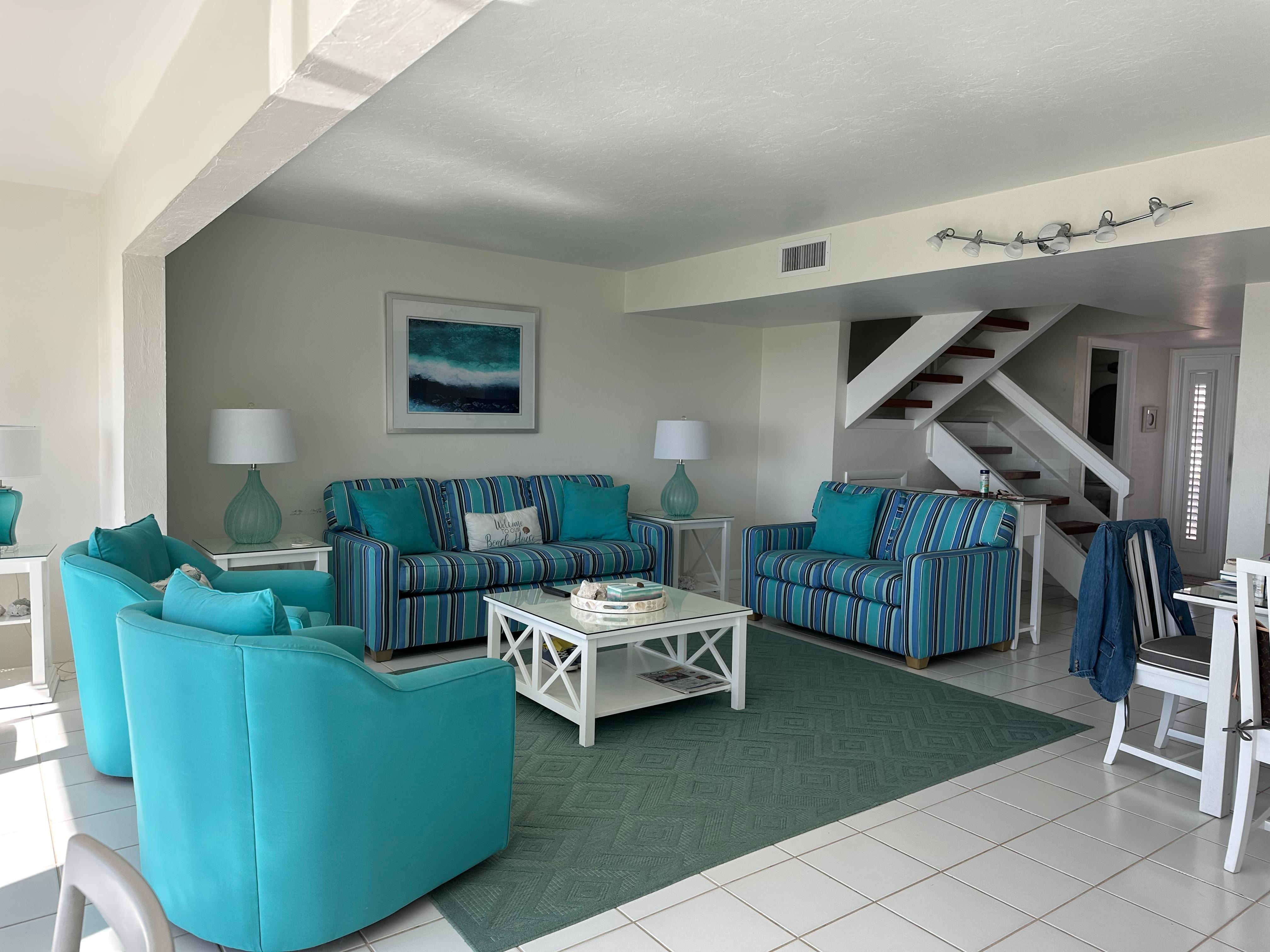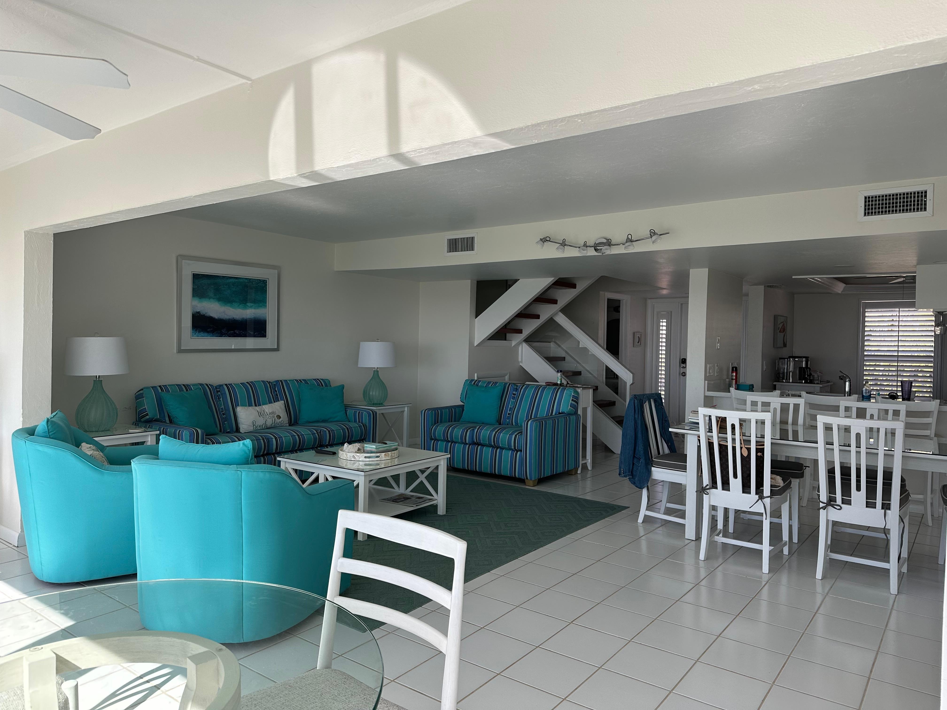 After a fun sun filled day swimming in the warm waters or searching for the perfect shells, relax and enjoy some family time playing a game and making memories in the gorgeous sunroom. With such amazing views, you may even spot a dolphin or 2!! The townhome features an open floor plan with plenty of room in the living room for everyone to lounge, and enjoy a home cooked dinner created from the updated kitchen. Make your way upstairs to the second living level where the primary bedroom has a king bed and en-suite bathroom. Another guest room also boasts a king bed and the 3rd bedroom provides 2 twin beds. The owner provides flat screen HDTV’s for each bedroom and the living room with DVD/Blu-ray players and HBO/Showtime channels.