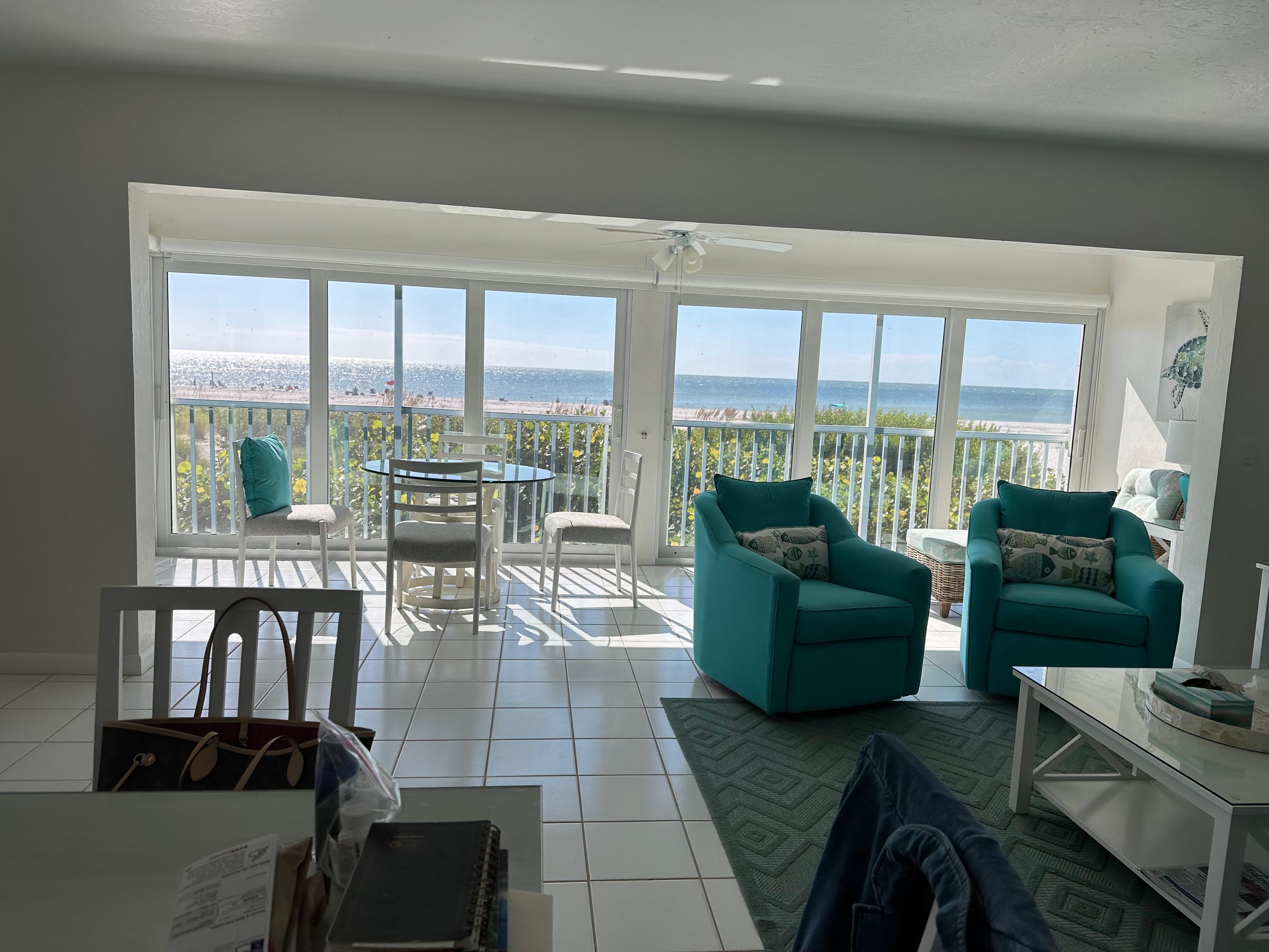 This condo has a great view of the gulf from a living room and bedroom. I would stay there again