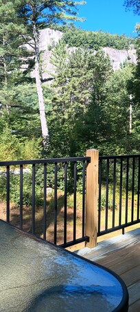 This chalet is nestled in the pines in a private association at the base of a world class climbing ledge. Only 1.5 miles from the village of N. Conway with all it's amenities and attractions. Its location borders the White Mountain National Forest System with a beautiful lake and miles of walking and hiking trails. Take the 1 mile auto road to the top of Cathedral Ledge for breath taking views of the Mt. Washington Valley and surrounding mountains.