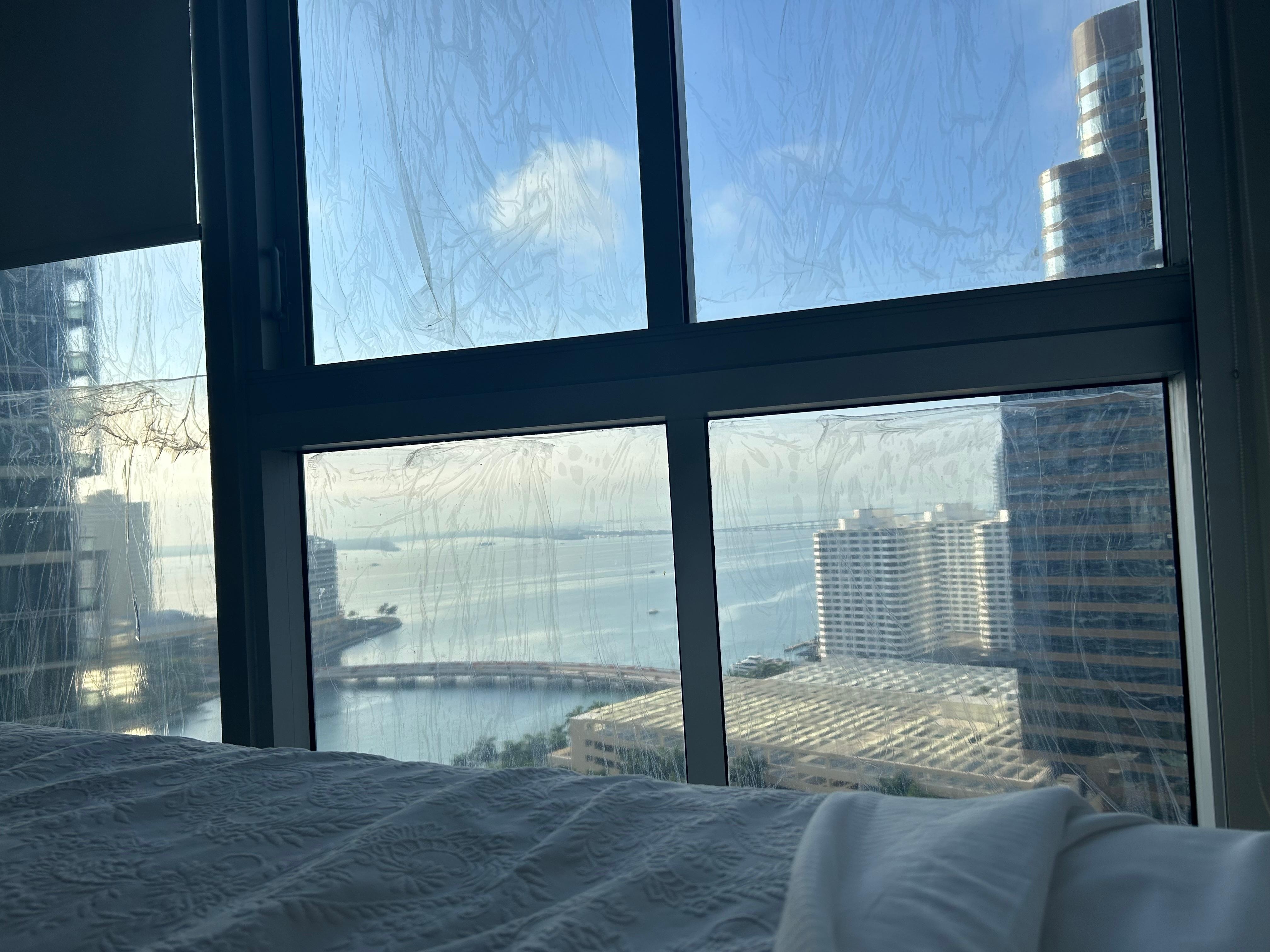 Cellophane/protective covering may be placed on windows, significantly limiting visibility and natural views