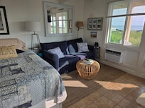4 night minimum. Studio efficiency with beach rights. Private beach located right across the street, first floor condo. Kitchenette has a fridge, two burner electric stove top, microwave, sink, toaster. Parking for one vehicle in open lot. Minutes to Ptown by car or bus. Relax in the adirondack chairs on the wrap around deck. Catch some cool breezes and lovely views. Folding table and chairs also provided. Community BBQ grill. No linens provided.