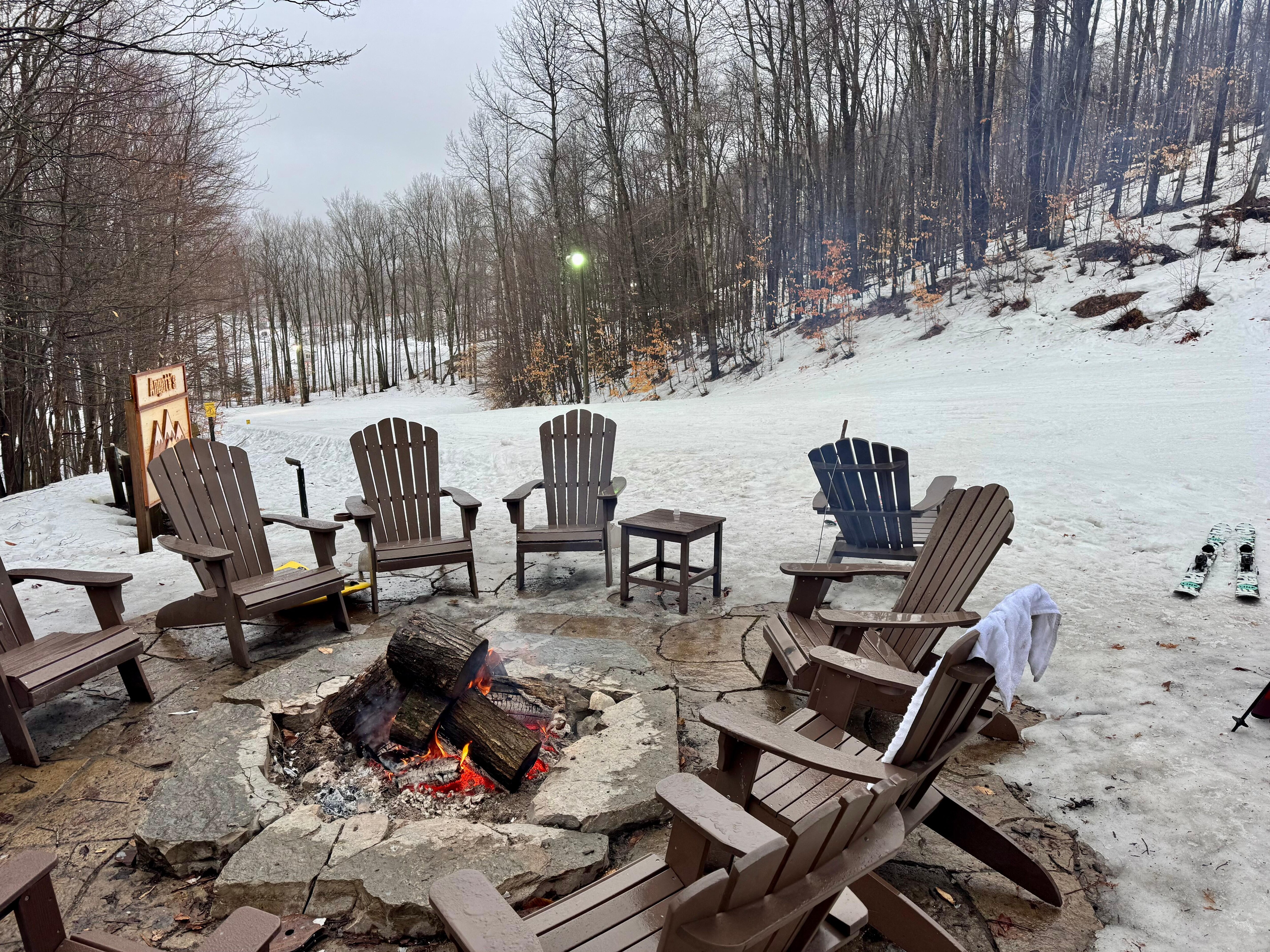 Be embraced by the soothing warmth of the crackling fire pit, where stories come alive amidst the dancing flames and laughter echoes through the night. Lounge on the upscale patio furniture, Adirondack chairs or outdoor igloo. While relaxing outside you can enjoy the secluded mountainside in the spring, summer and fall. In the winter you can enjoy watching the skier's ski down your backyard.