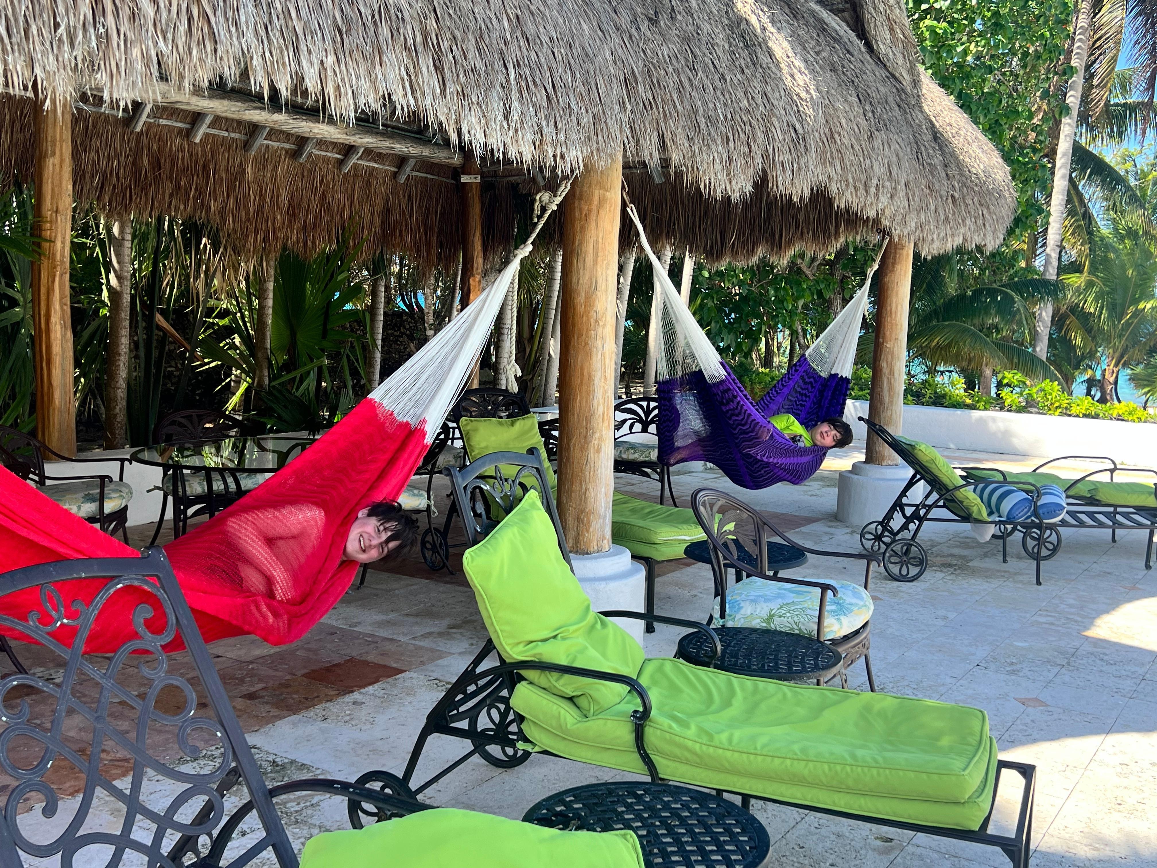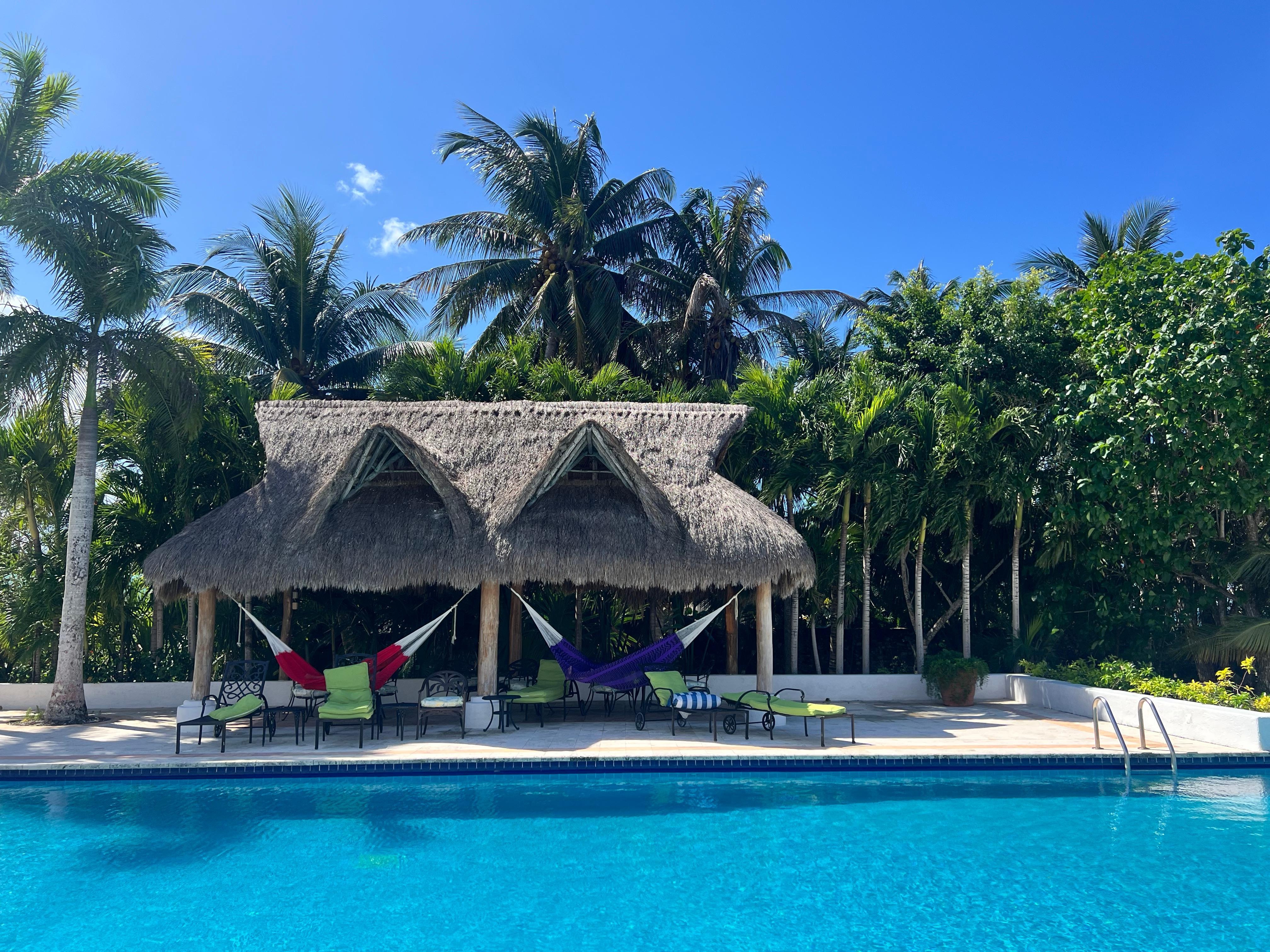 Casa Gordon offers a full staff who provide normal domestic services as well as concierge duties. The rooms are all air-conditioned. Bedrooms are equipped with telephones allowing local, long distance, and intercom service, televisions with DVD players, and are all decorated and furnished with different themes. A media room has Roku Smart television and a wireless broadband internet system blankets the common areas of the house The Game Room contains the pool table and three convertible futons that can, in a pinch, serve as double beds for children. The Exercise Room is furnished with weights, exercycles, elliptical cross trainer, etc. Every bedroom has a porch and terraces, up and down, surround the courtyard and the main areas of the villa. The swimming pool with an "invisible edge" waterfall dominates one side of the house that also includes a dive gear storage room, dive gear rinse tank, shower room, and palapa with hammocks for escaping the sun, snoozing or partying. Volleyball equipment is available as are two kayaks and three stand up paddles.