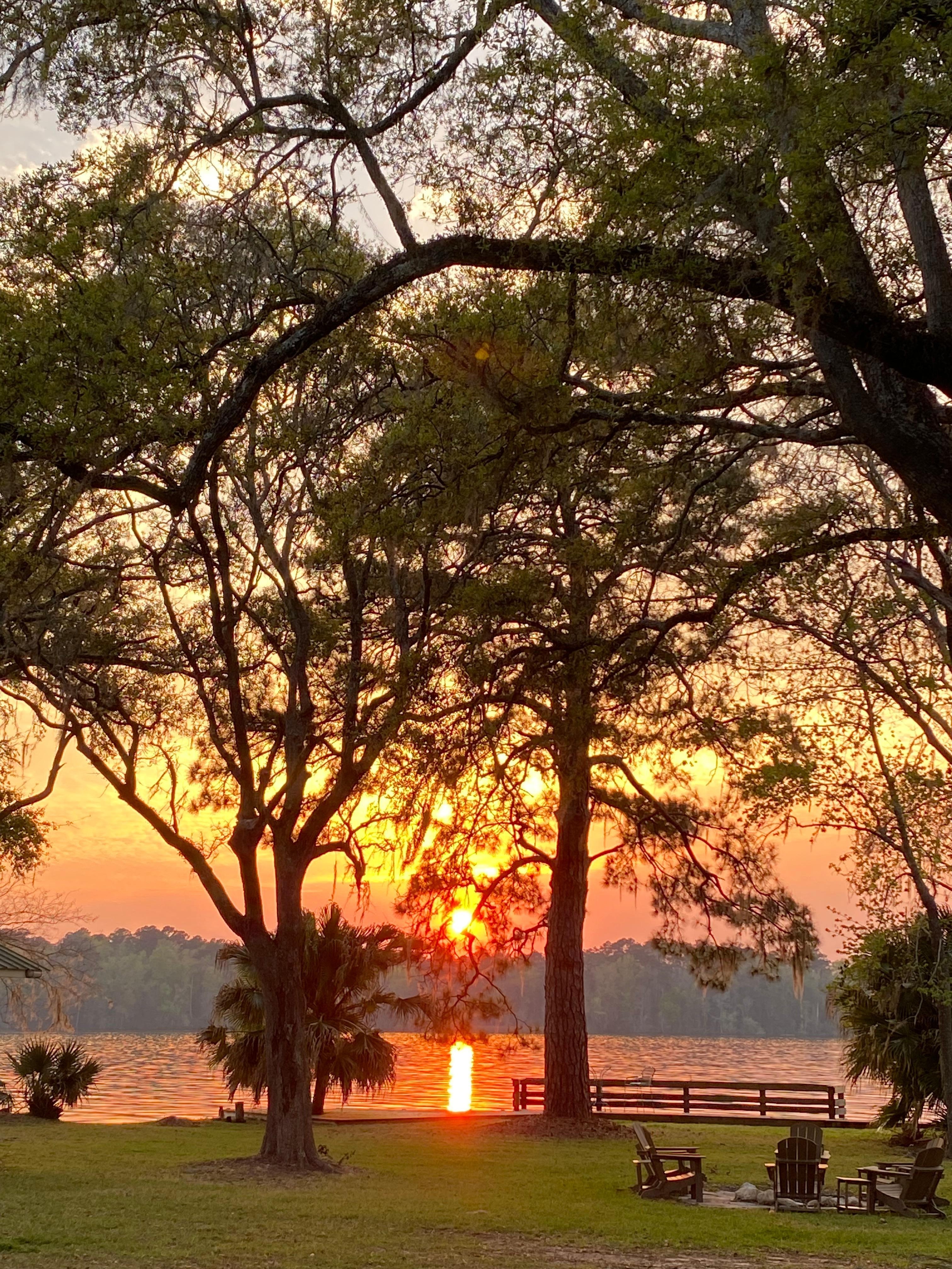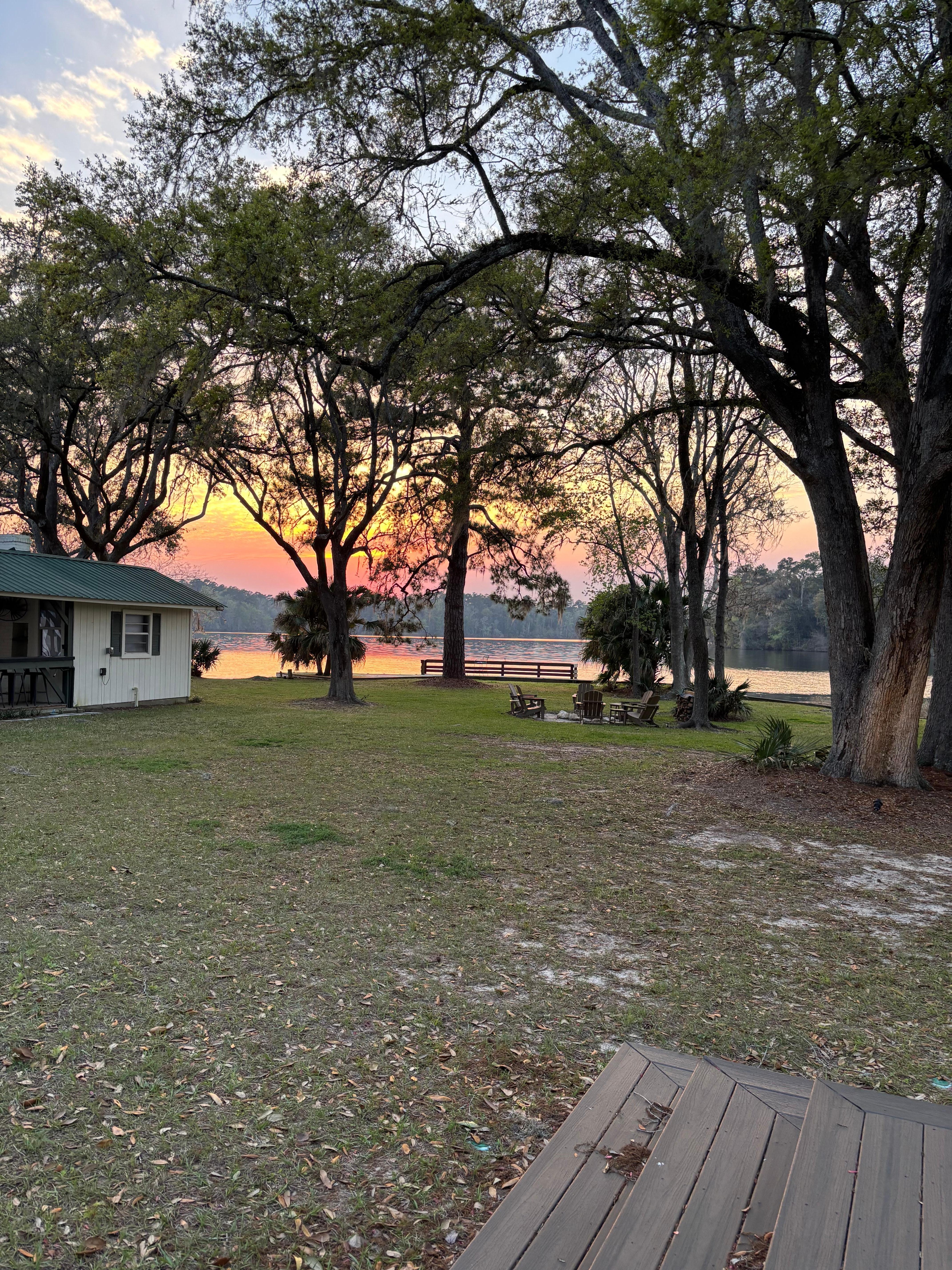 This property has absolutely everything you could want and more. This was our second stay and we will be back again for sure. Only about a 40 minute drive from Florida State University, it’s a great place to stay if visiting a student. The lake is beautiful and because it’s a peninsula, you can see the sunrise and the sunset.Make sure you bring your bug spray, but they have that there too if you forget. It’s definitely an all natural property so there are lots of little bugs around, but that is to be expected. The fire pit is perfect in the evening and we enjoyed that there was some wood provided for us. They have a charcoal grill if you want to cook out and the Walmart is in Quincy or you can even have food delivered from the store if you have Walmart Perfect place for stargazing too