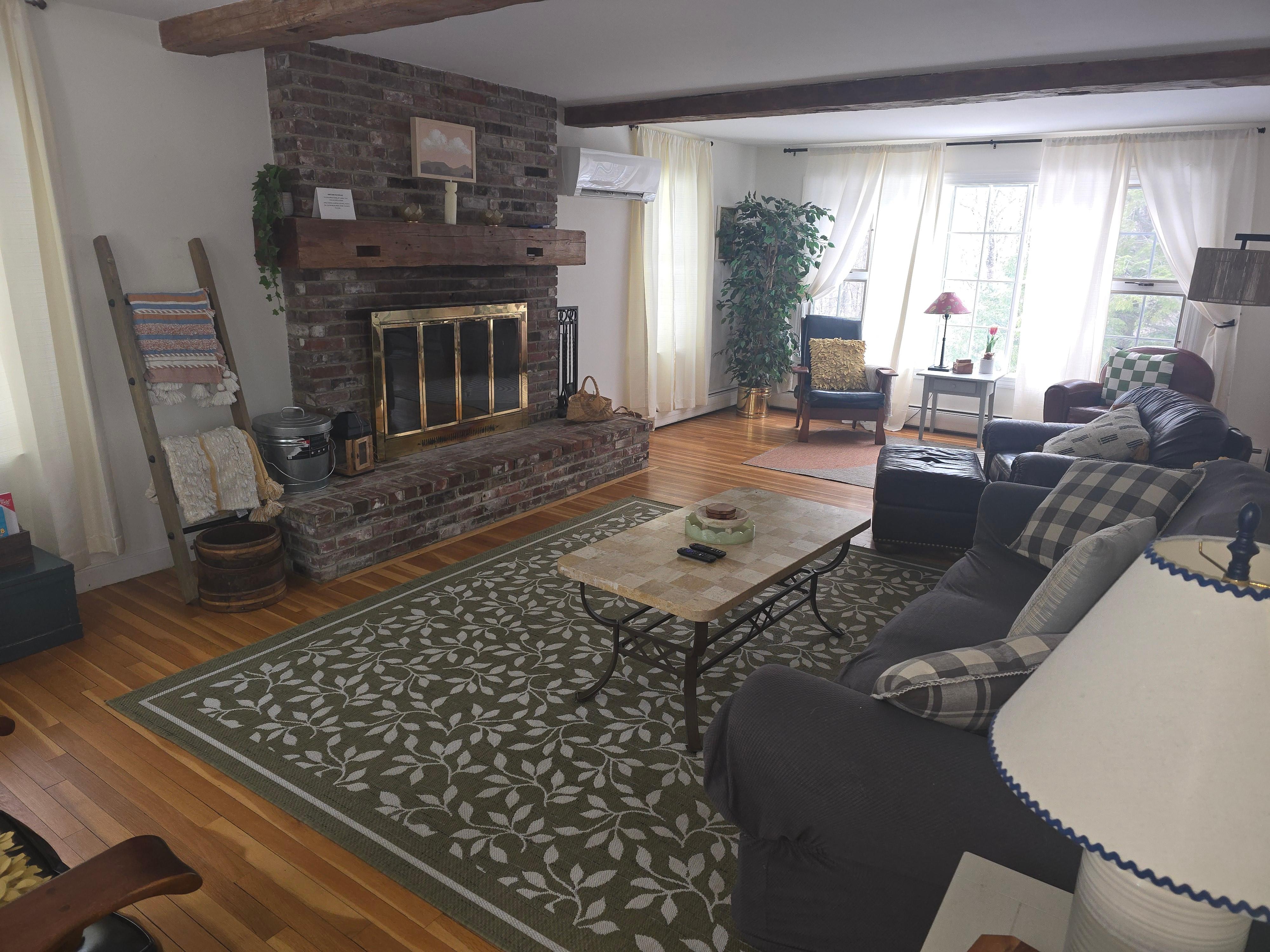 - Oversized living room w/ wood-burning fireplace, TV, wifi